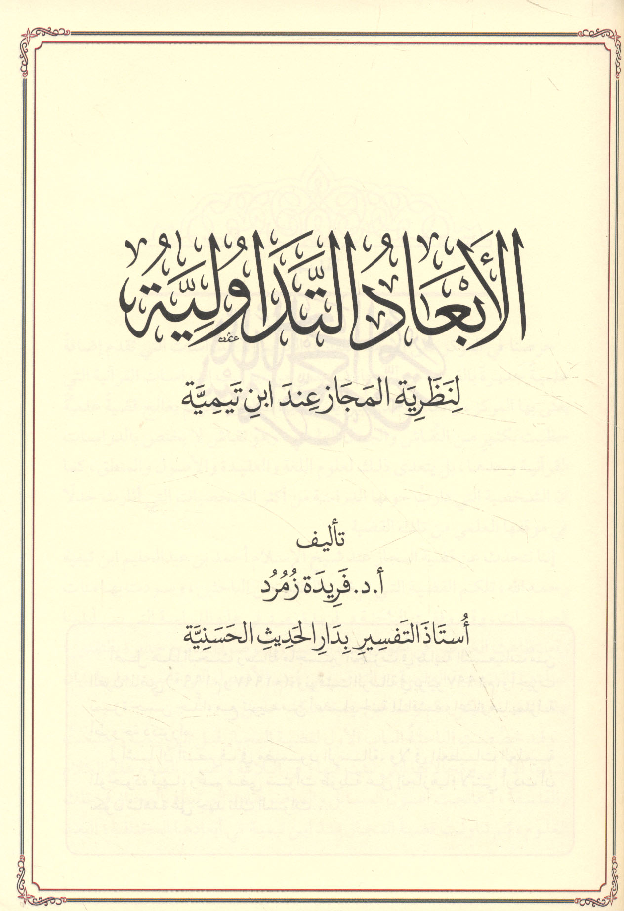 Subject: Ibn Taymiyah, Ahmad ibn Abd al-Halim, 1263-1328 -- Views on Arabic rhetoric.