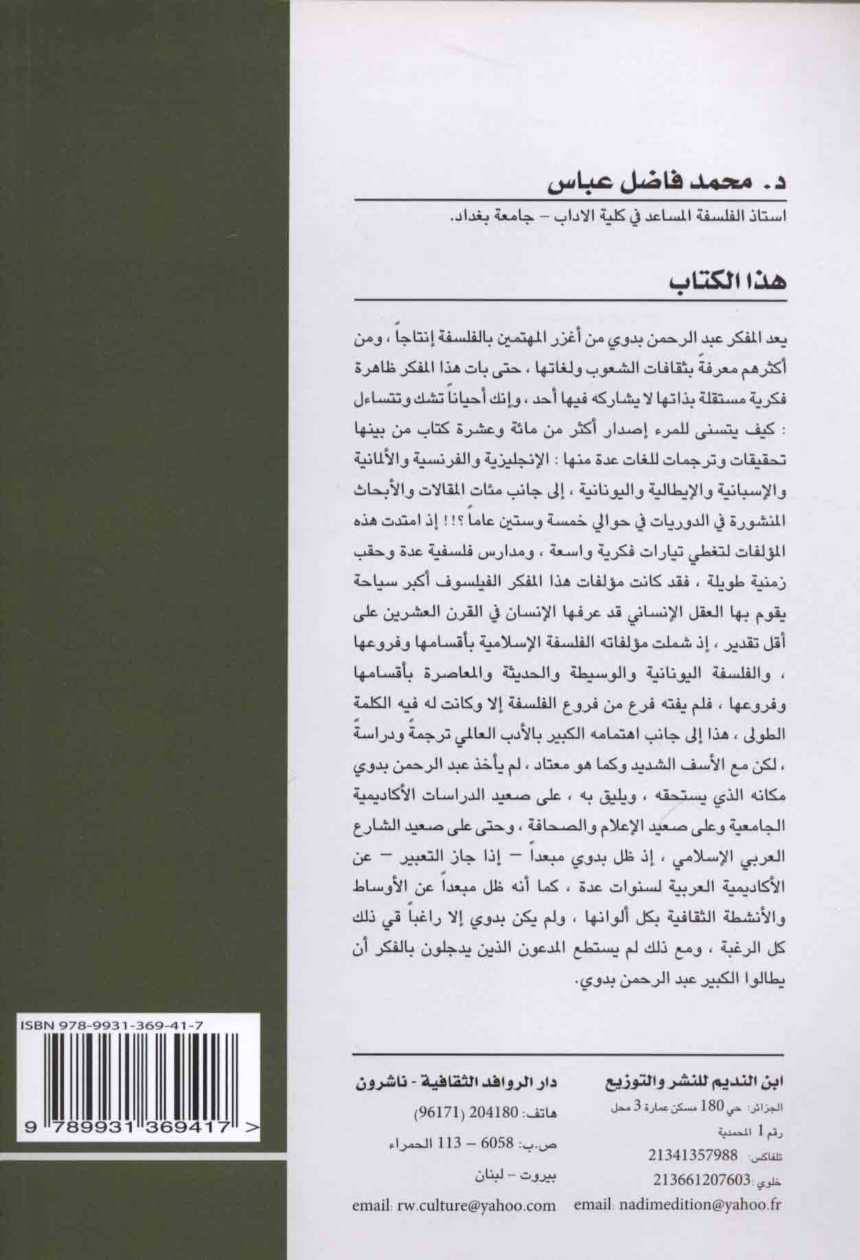 Abd al-Raḥmān Badawī, rā’idan lil-falsafah fī al-fikr al-‘Arabī al-mu‘āṣir