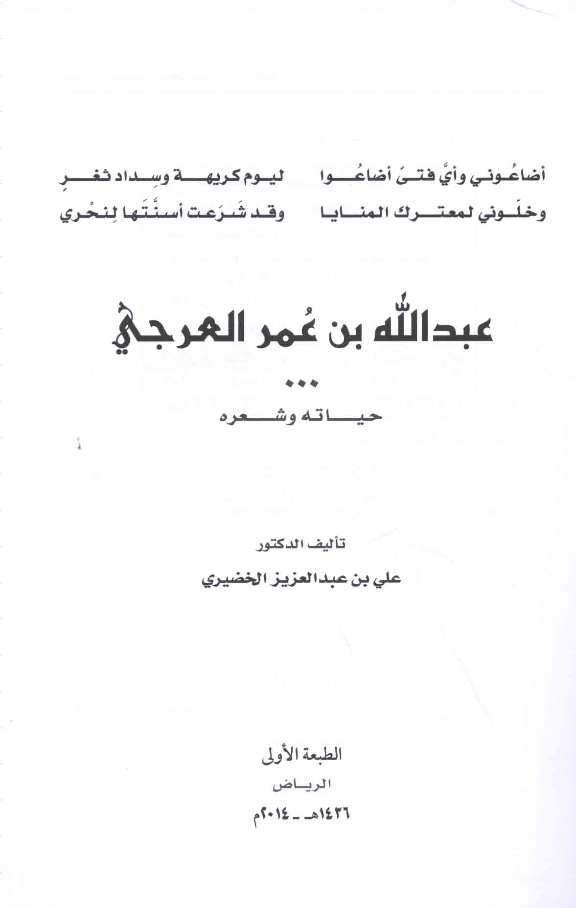 Abd Allāh ibn ‘Umar al-‘Arjī, ḥayātuhu wa-shi‘ruh