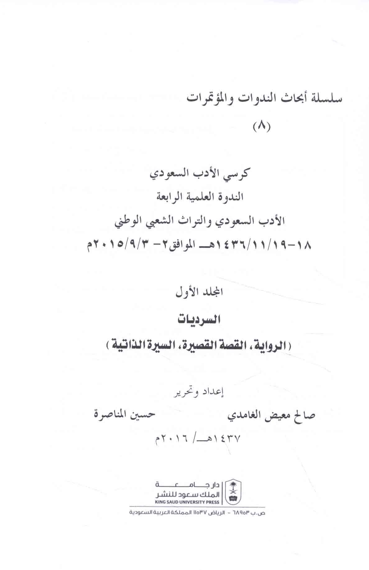 Subject: Arabic fiction -- Saudi Arabia -- History and criticism -- Congresses.