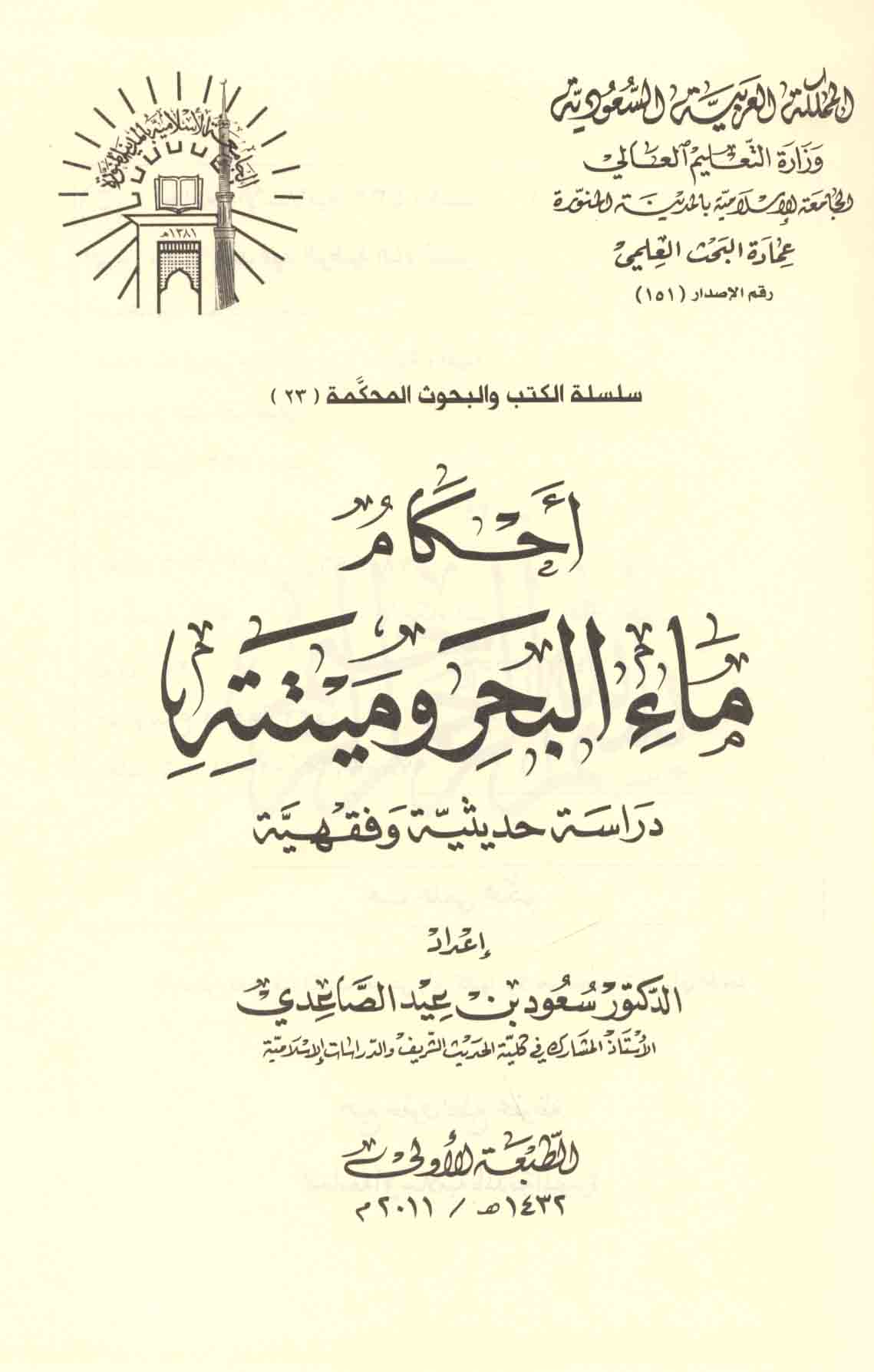 Aḥkām mā’ al-baḥr wa-mītatih, dirāsah ḥadīthīyah wa-fiqhīyah