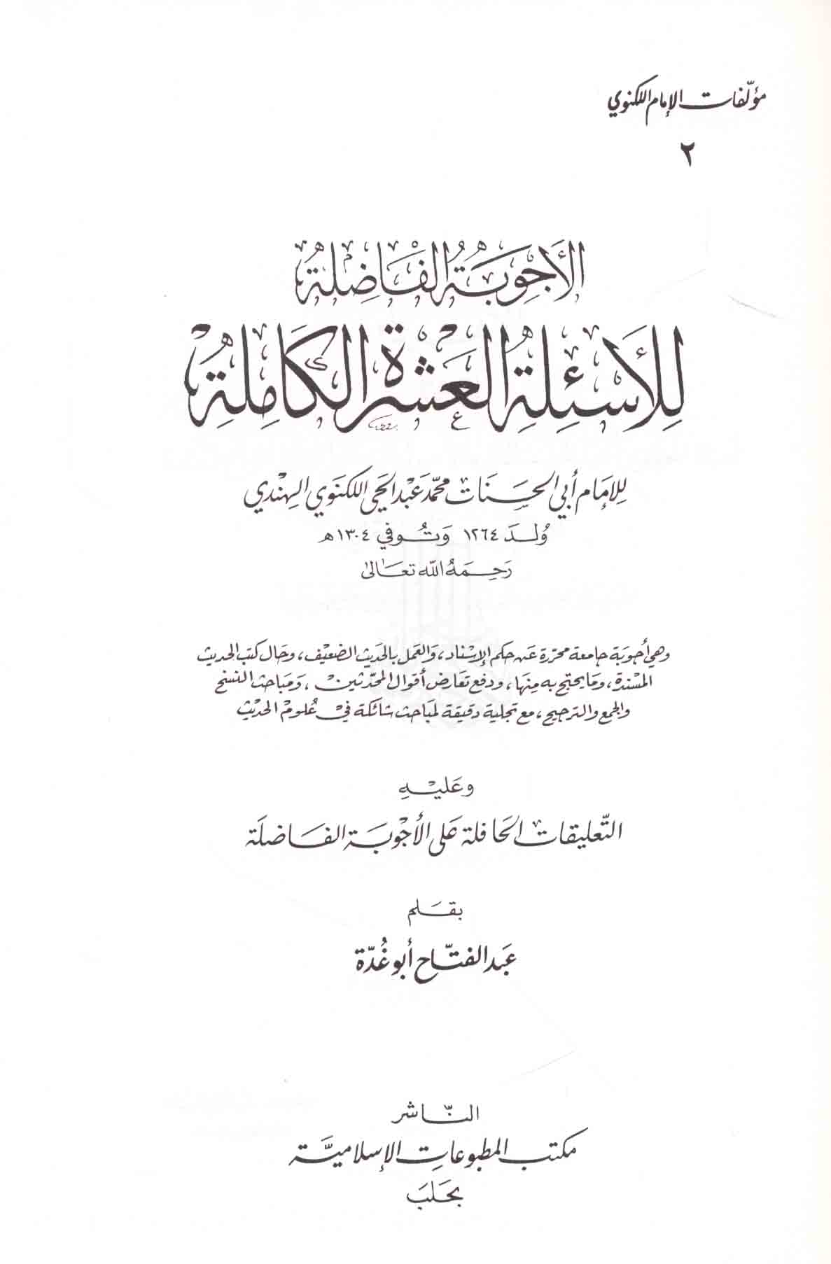 Series: Mu’allafāt al-Imām al-Laknawī, 2