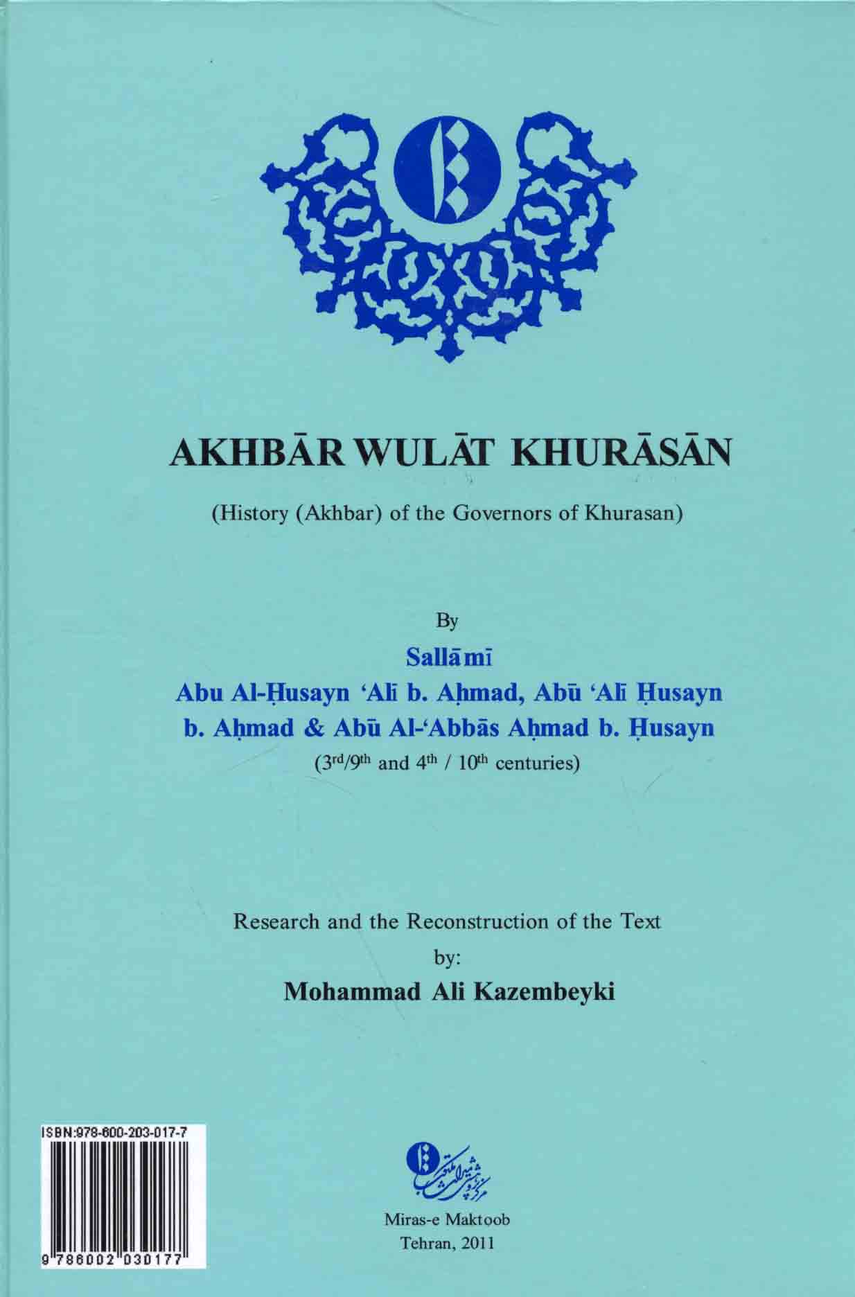 - Khurasan (Iran) -- History -- Sources