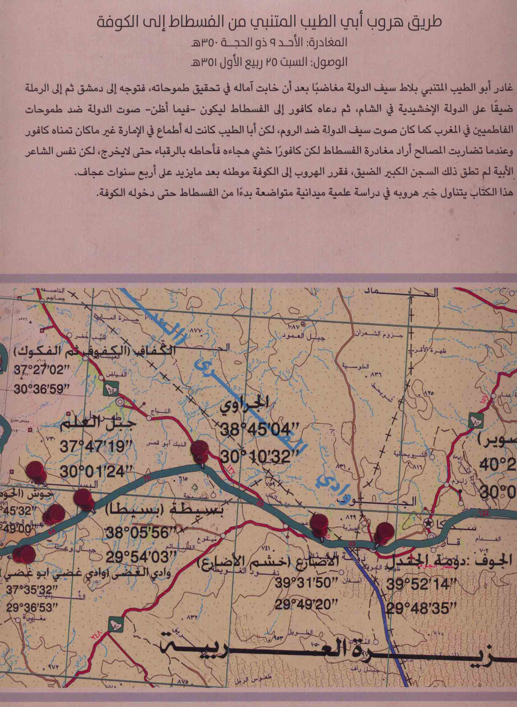 عـلـى خـطـى الـمـتـنـبـي، طـريـق هـروب أبـي الـطـيـب الـمـتـنـبـي مـن الـفـسـطـاط الـى الـكـوفـة، الـمـغـادرة، الأحـد 19 ذو الـحـجـة 350 هـ، الـوصـول، الـسـبـت 25 ربـيـع الأول 351 هـ