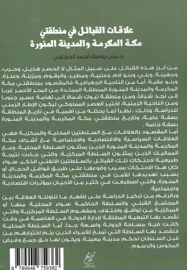Alāqāt al-qabā’il fī minṭaqatay Makkah al-Mukarramah wa-al-Madīnah al-Munawwarah bi-al-sulṭatayn al-maḥallīyah wa-al-markazīyah fī al-‘aṣr al-Mamlūkī, 648-923 H/1259-1517 M