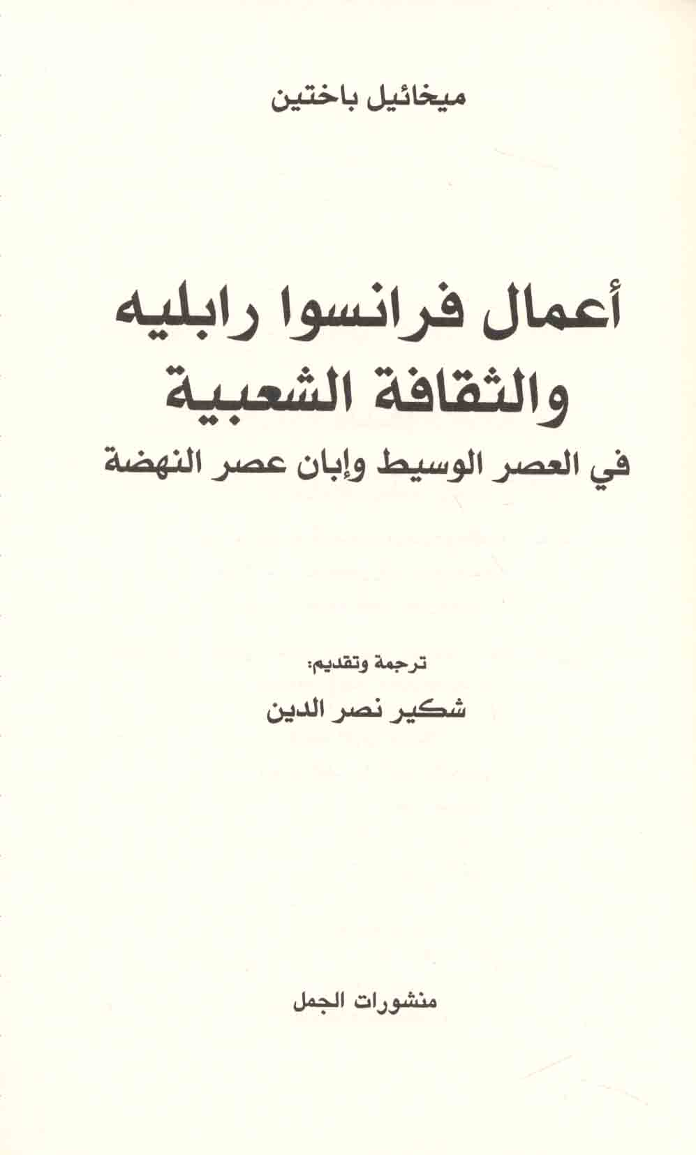 أعـمـال فـرانـسـوا رابـلـيـه و الـثـقـافـة الـشـعـبـيـة فـي الـعـصـر الـوسـيـط و ابـان عـصـر الـنـهـضـة