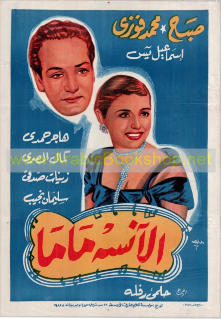 الآنـسـة مـامـا ؛ تـمـثـيـل صـبـاح، مـحـمـد فـوزي، إسـمـاعـيـل يـاسـيـن، هـاجـر حـمـدي، كـمـال الـمـصـري، زيـنـات صـدقـي، سـلـيـمـان نـجـيـب، رسـم وهـيـب فـهـمـي ؛ مـطـابـع الـنـصـر