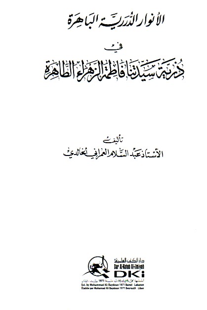 الأنـوار الـدرريـّة الـبـاهـرة في ذريـّة سـيـدتـنـا فـاطـمـة الـزهـراء الـطـاهـرة