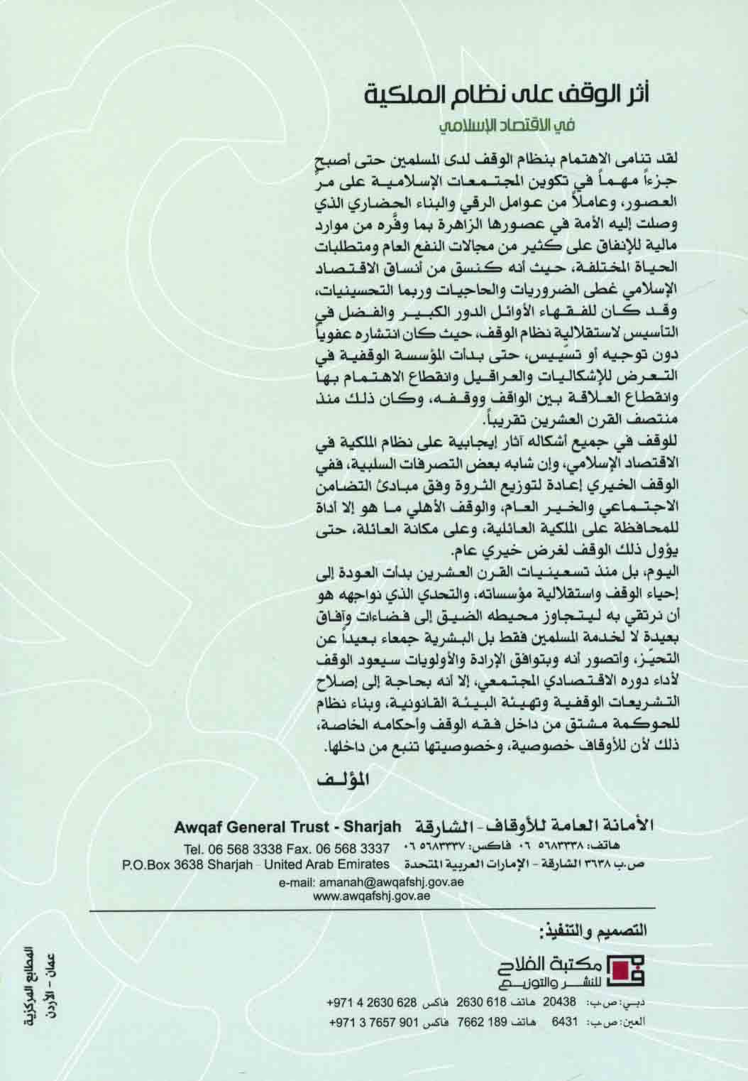 Series: Silsilat Iṣdārāt al-Amānah al-‘Āmmah lil-Awqāf bi-al-Shāriqah, 7
