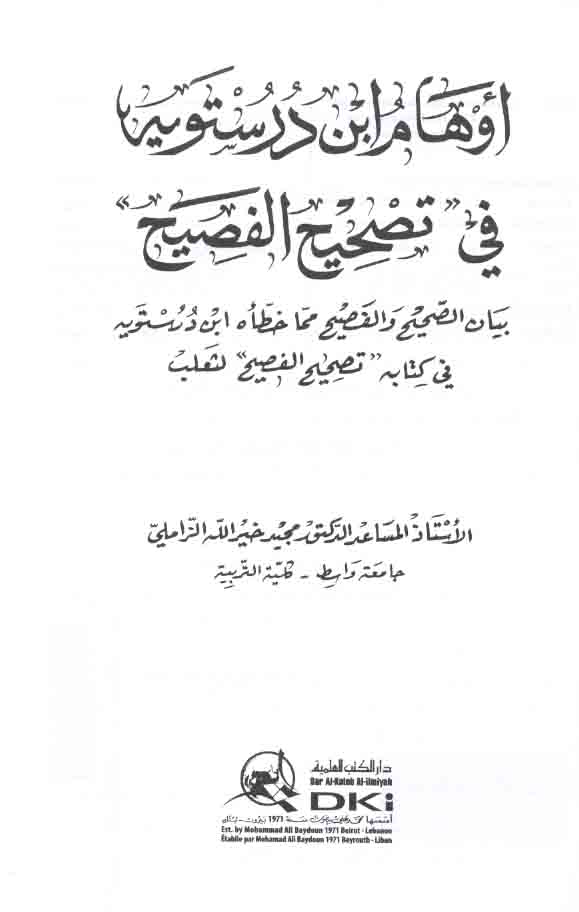Subject: Ibn Durustawayh, Abd Allah ibn Jafar, 871 or 2-958 or 9 -- Criticism and interpretation.