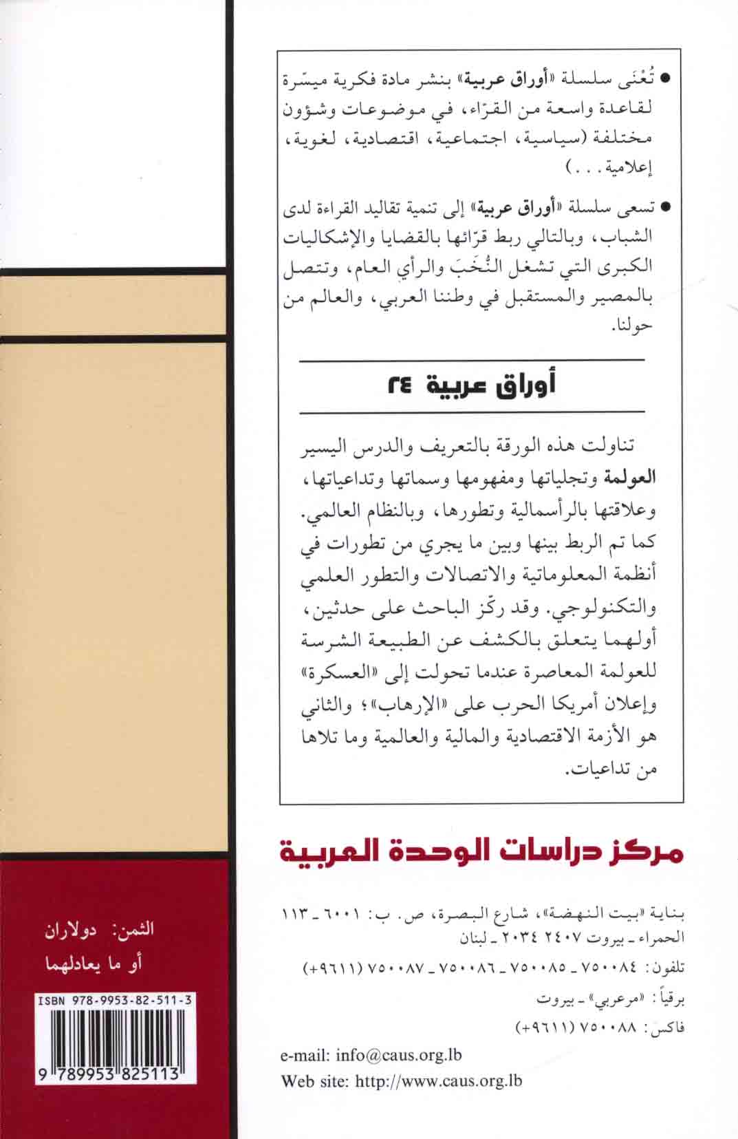 | al-‘Awlamah bayna rafāhīyat al-insān wa-haymanat al-qūwah |