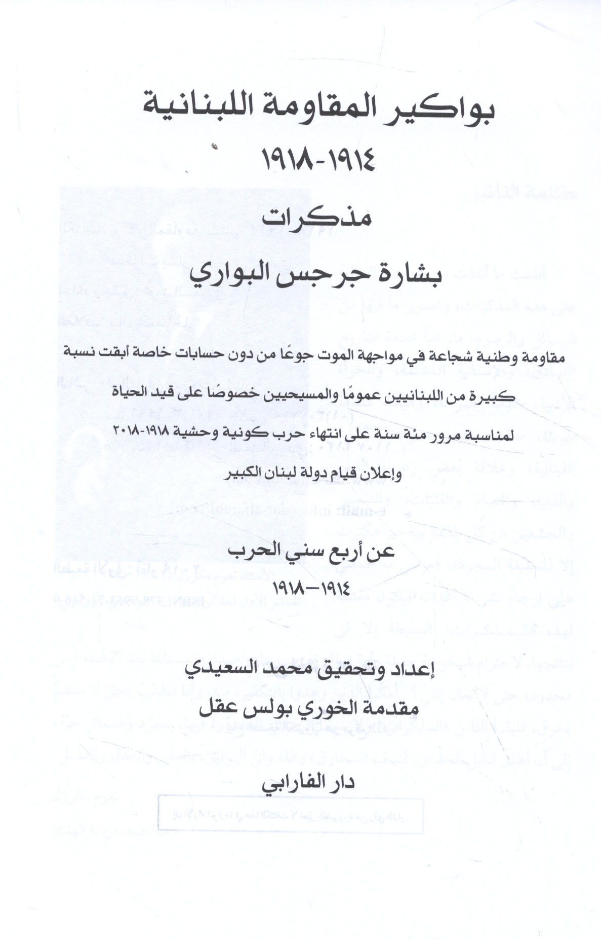 - World War, 1914-1918 -- Lebanon -- Sources