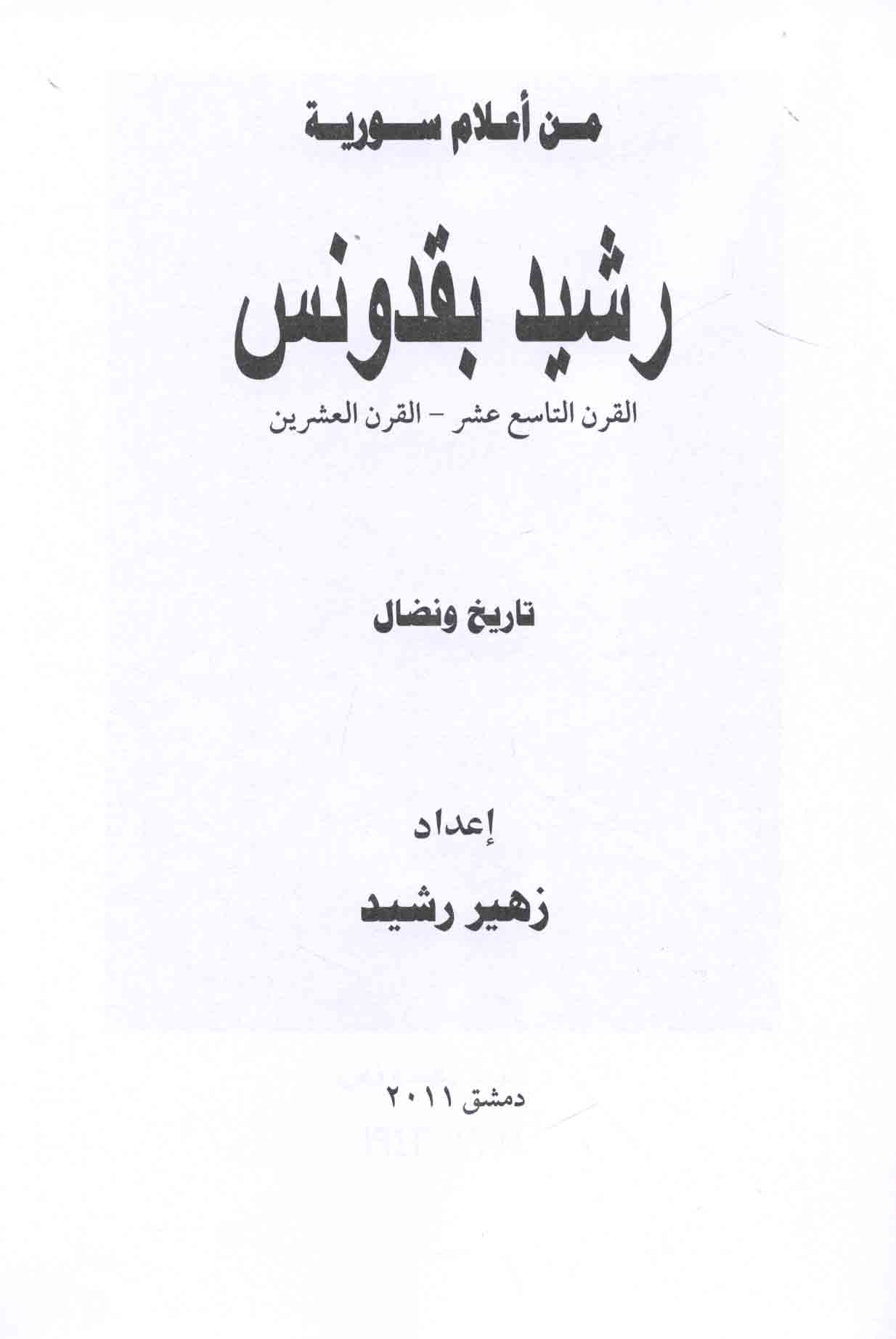 مـن أعـلام سـوريـة ، رشـيـد بـقـدونـس، الـقـرن الـتـاسـع عـشـر - الـقـرن الـعـشـريـن ، تـاريـخ و نـضـال