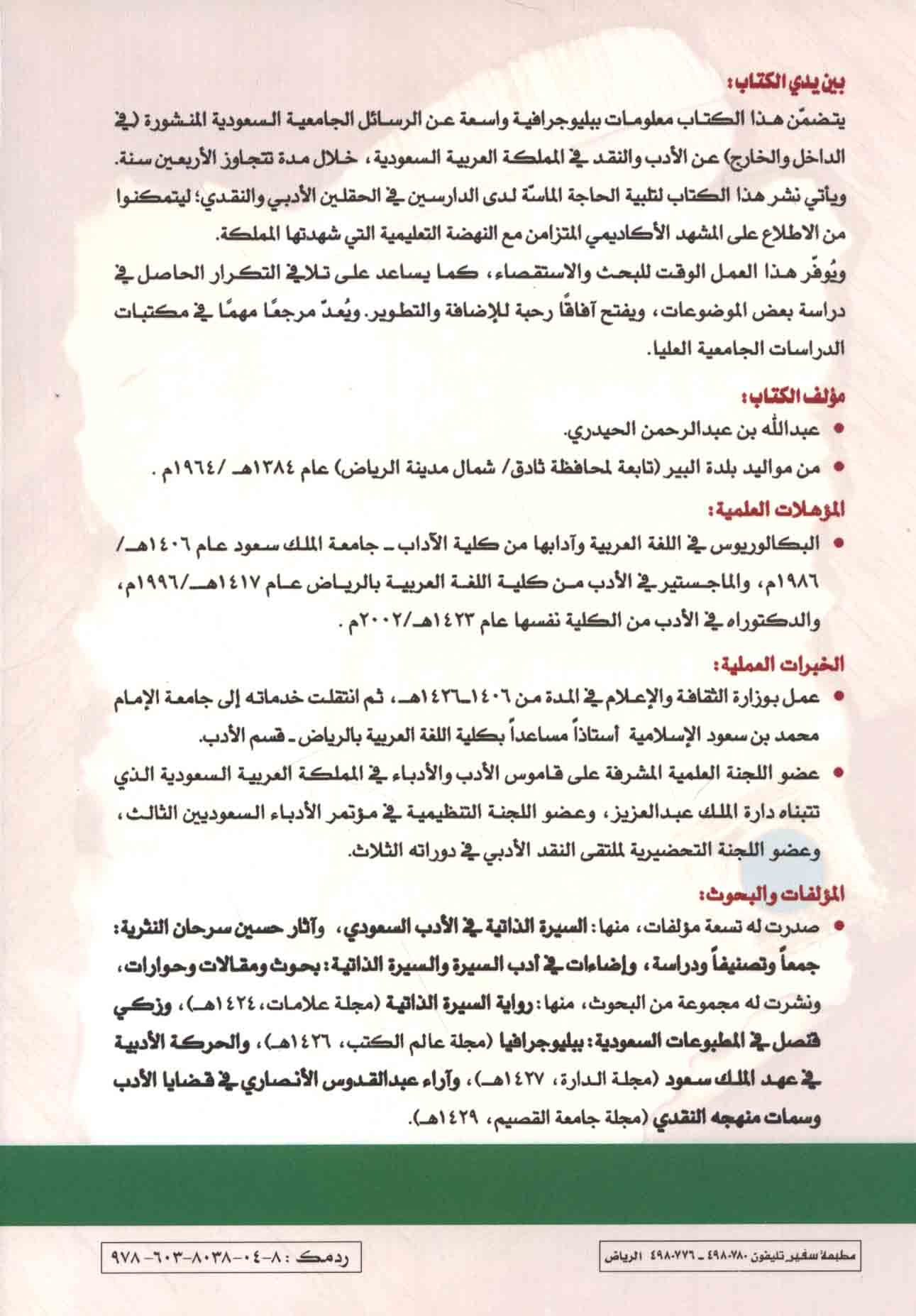 | Dalīl al-rasā’il al-jāmi‘īyah fī al-adab wa-al-naqd fī al-Mamlakah al-‘Arabīyah al-Sa‘ūdīyah |