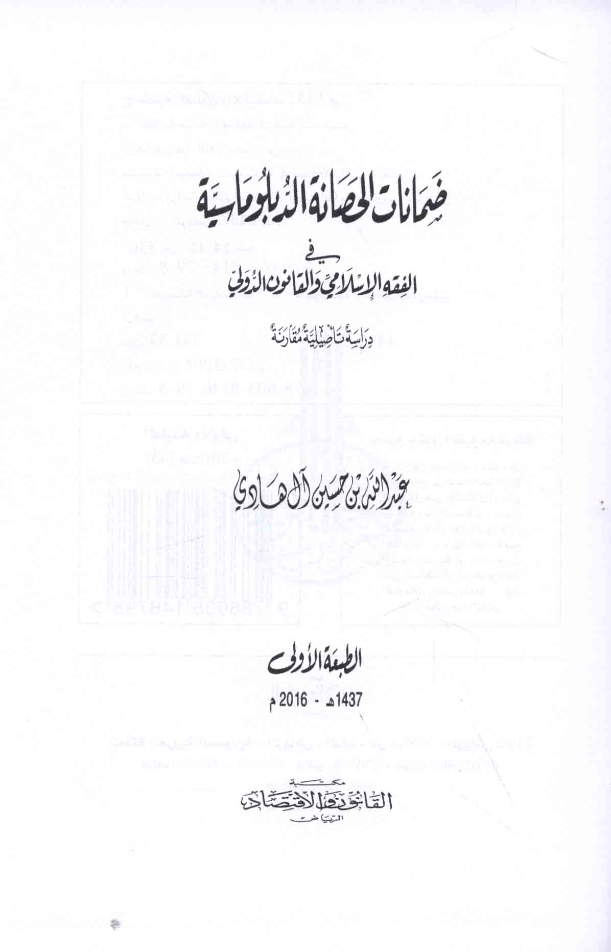 | al-Ḥaṣānah al-diblūmāsīyah bayna al-qānūn al-duwalī wa-siyādat al-dawlah |