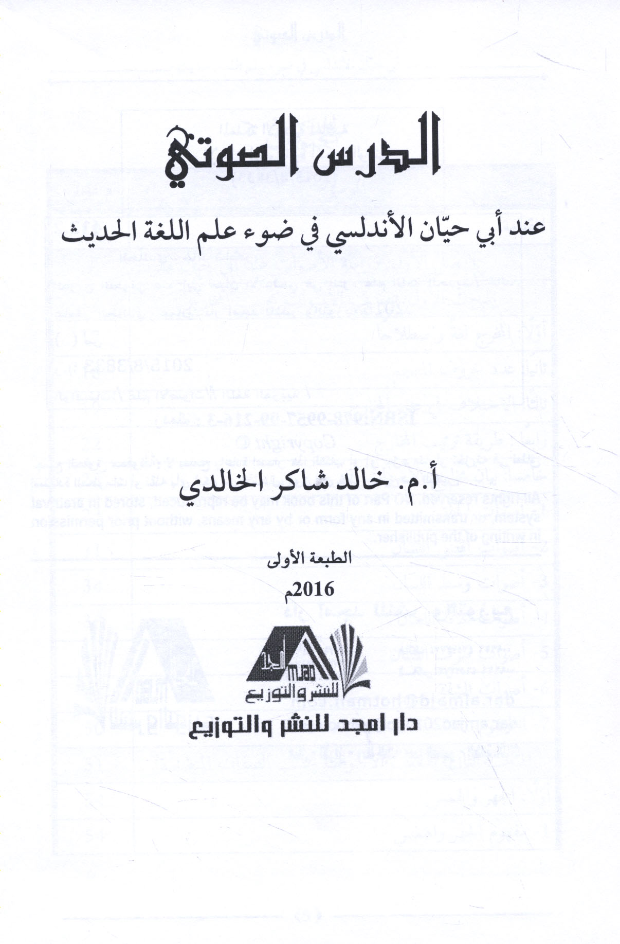 Published/Created: ‘Ammān : Dār Amjad lil-Nashr wa-al-Tawzī‘, 2016.
