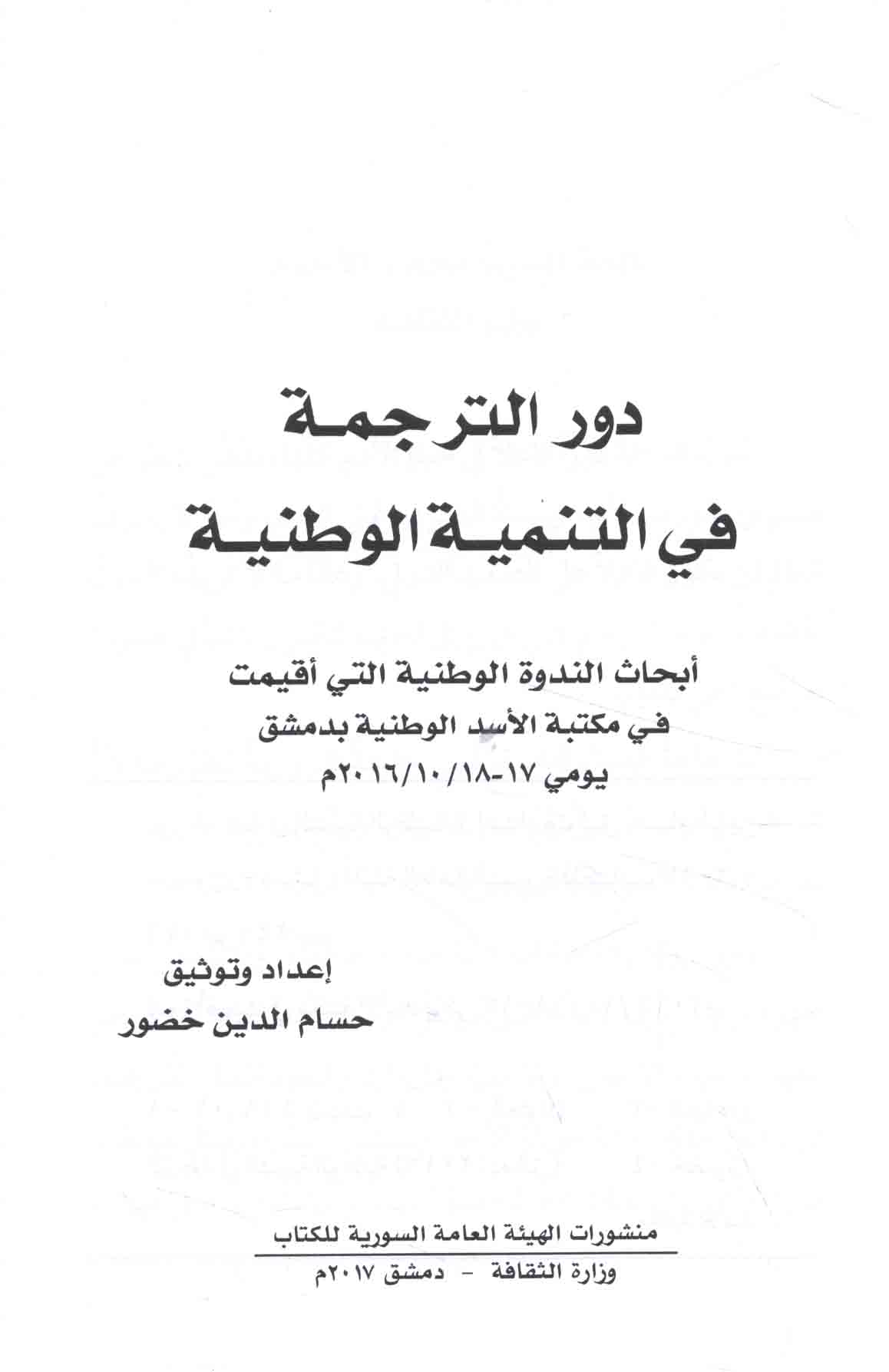 Published/Created: Dimashq : Wizārat al-Thaqāfah, al-Hay’ah al-‘Āmmah al-Sūrīyah lil-Kitāb, 2017.