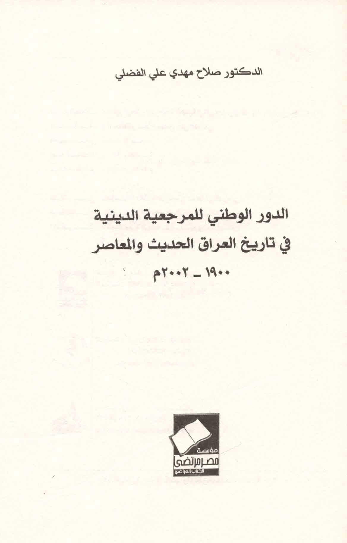 Dawr al-waṭanī lil-marji‘īyah al-dīnīyah fī tārīkh al-‘Irāq al-ḥadīth wa-al-mu‘āṣir, 1900-2002