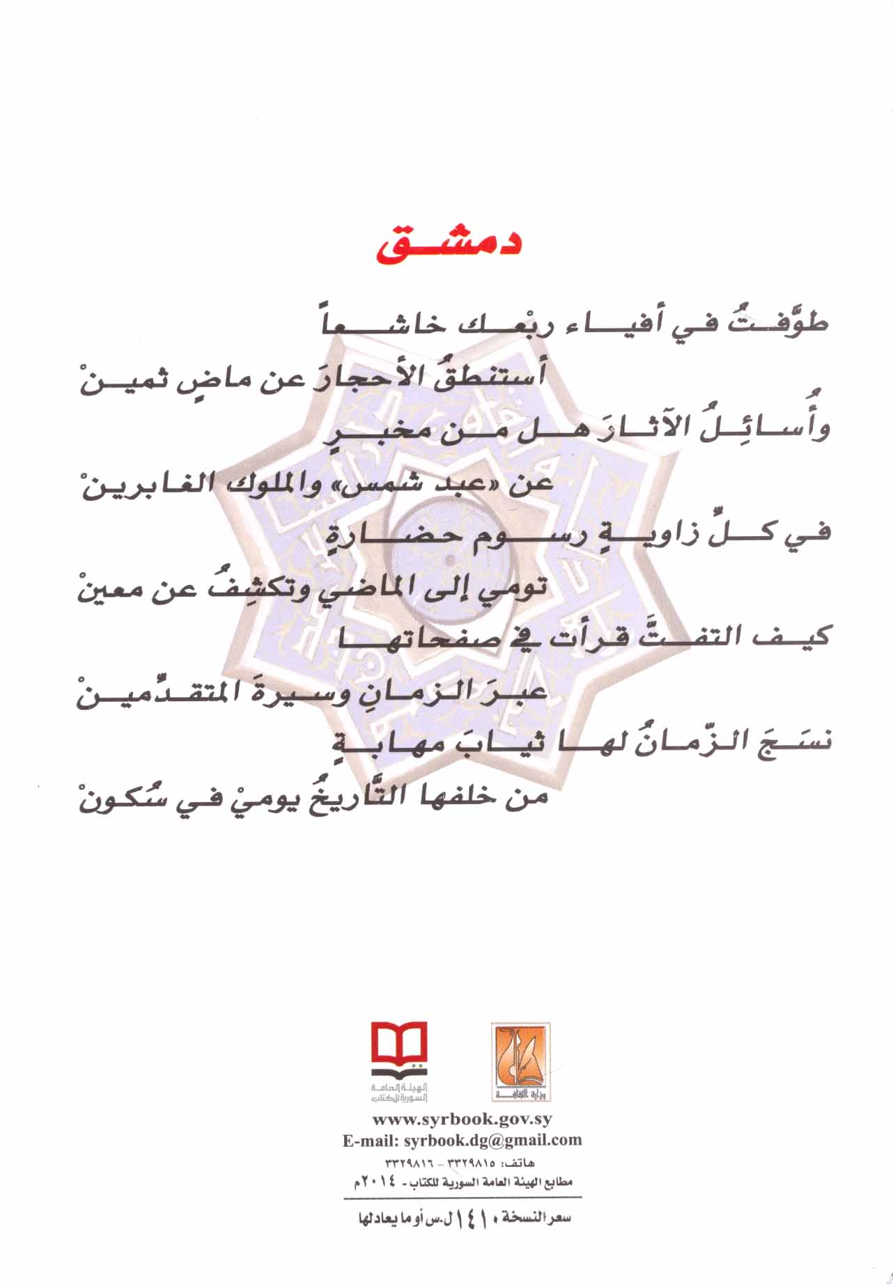 Published/Created: Dimashq : Wizārat al-Thaqāfah, al-Hay’ah al-‘Āmmah al-Sūrīyah lil-Kitāb, 2014.