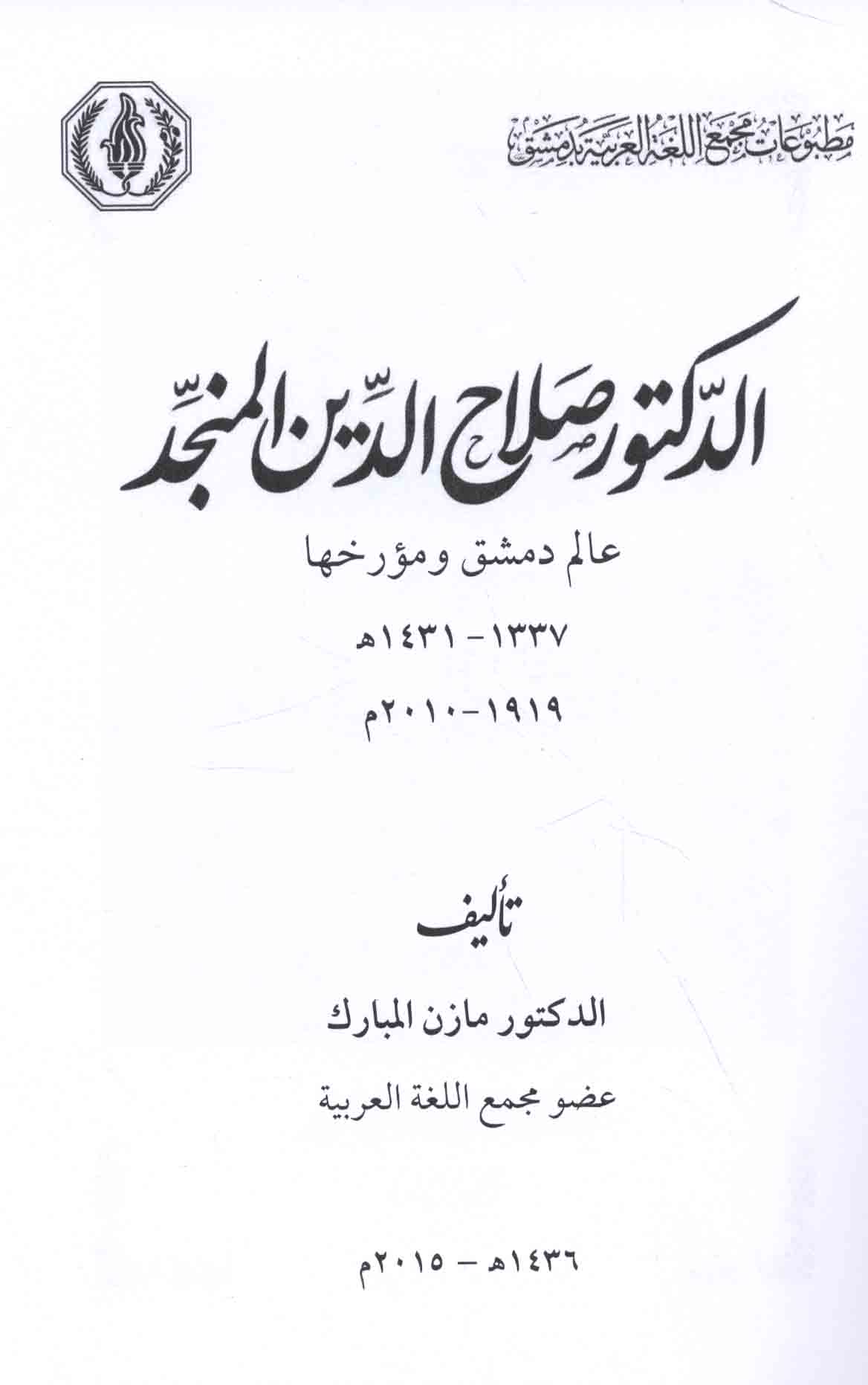 | al-Majma‘īyūn al-awā’il fī al-Majma‘ al-‘ilmī al-‘Arabī bi-Dimashq wa-ta‘rībuhum lil-ḥayāh, lisānan wa-insānan wa-waṭanan |