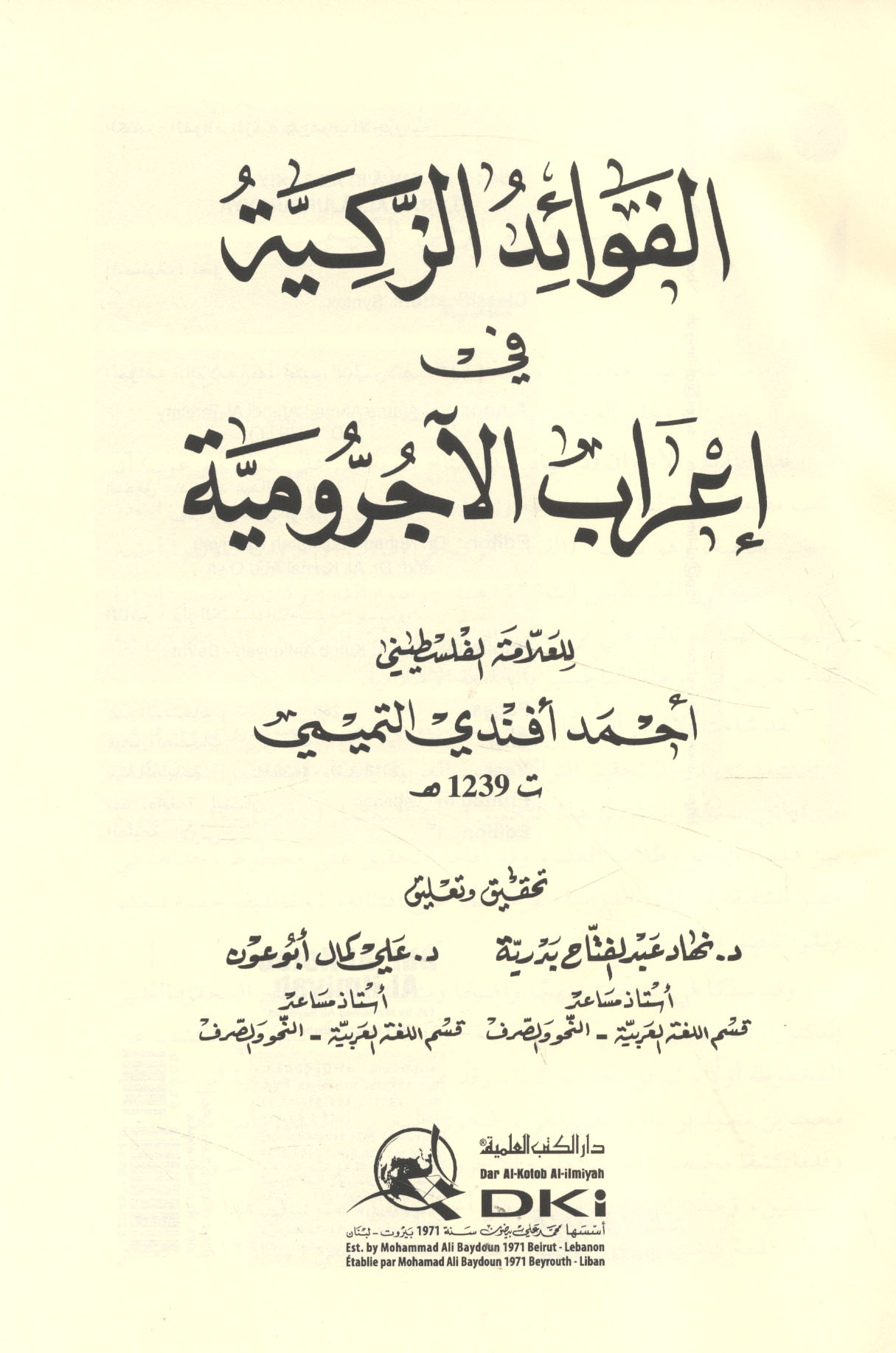 | Tawḍīḥ al-Tuḥfah al-sanīyah bi-sharḥ al-Muqaddimah al-Ājurrūmīyah |