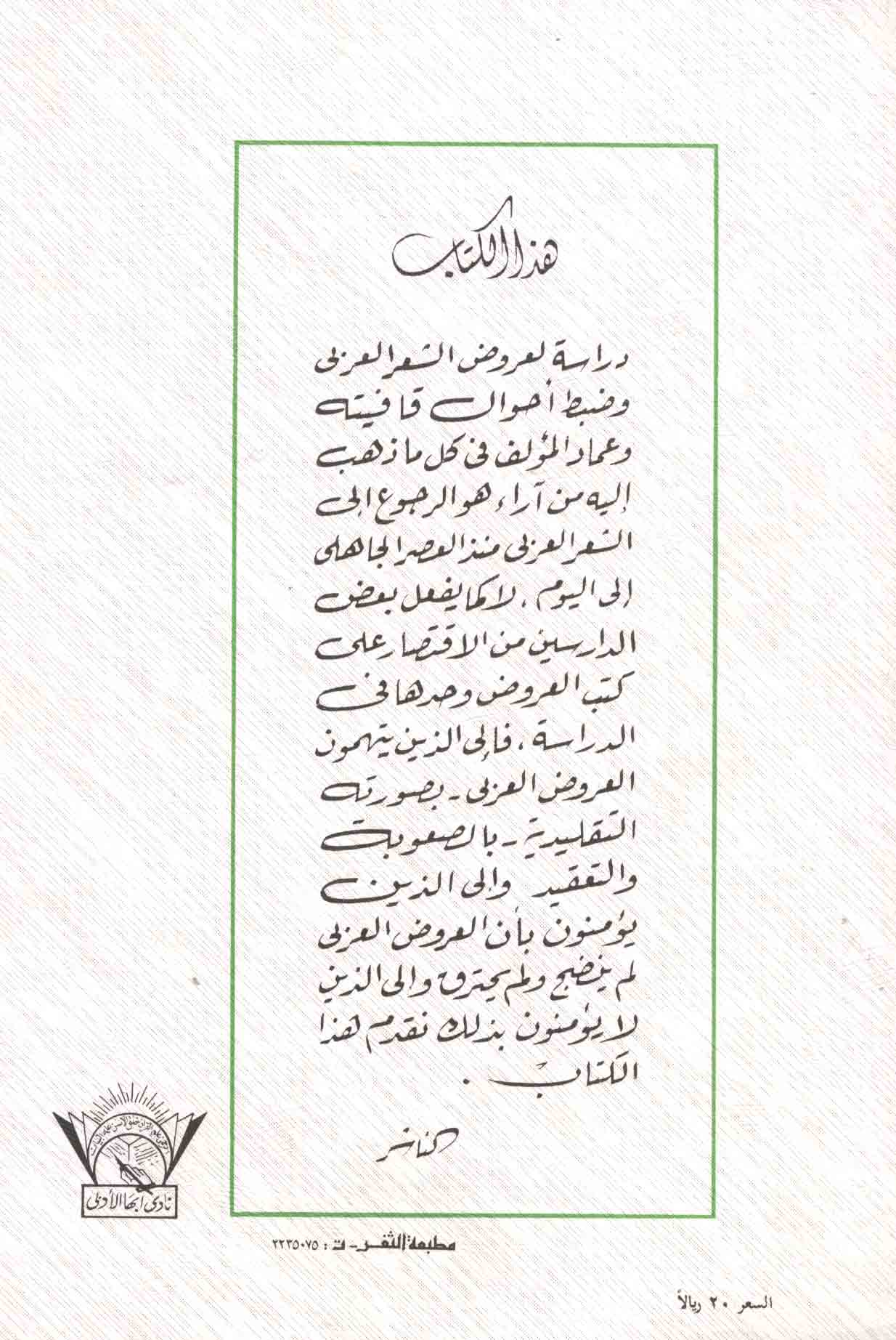 | Mūsīqā al-‘arūḍ wa-al-qāfiyah wa-al-shi‘r al-ḥurr |