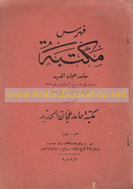 Published/Created: Ḥalab : Maktabat Ḥāmid ‘Ajjān al-Ḥadīd, 1959.