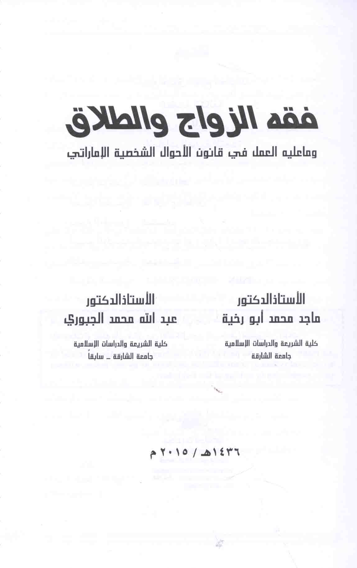 | Fiqh al-zawāj wa-al-ṭalāq wa-mā ‘alayhi al-‘amal fī qānūn al-aḥwāl al-shakhṣīyah al-Imārātī |