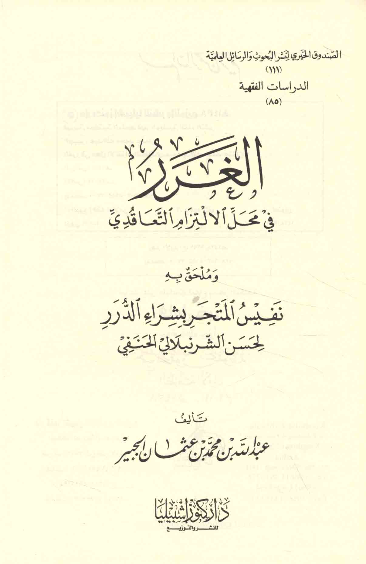 Series: al-Ṣundūq al-Khayrī li-Nashr al-Buḥūth wa-al-Rasā’il al-‘Ilmīyah. al-Dirāsāt al-Fiqhīyah, 111