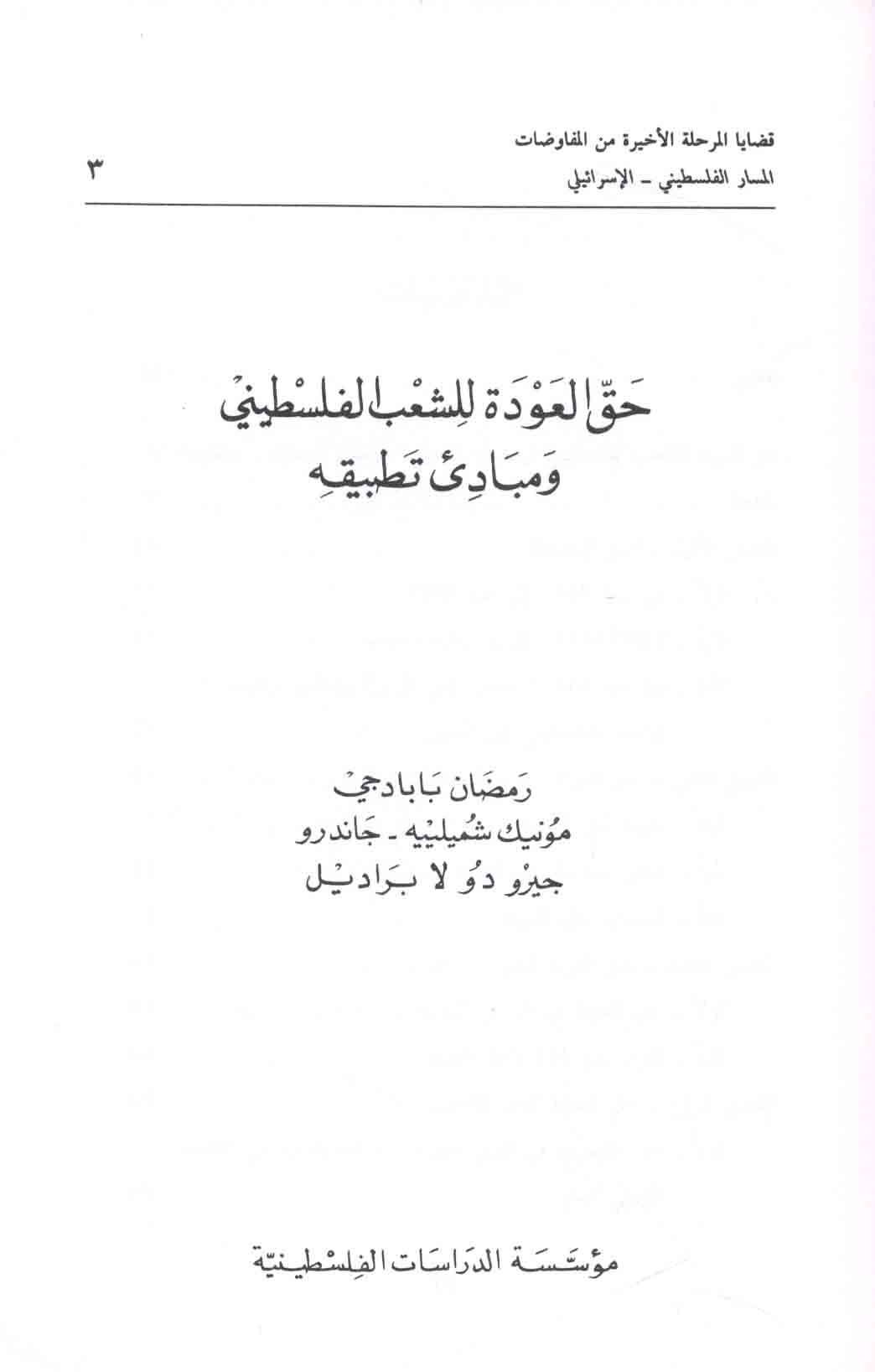 Series: Qaḍāyā al-Marḥalah al-Akhīrah min al-Mufāwaḍāt. al-Masār al-Filasṭīnī - al-Isrā’ilī, 3