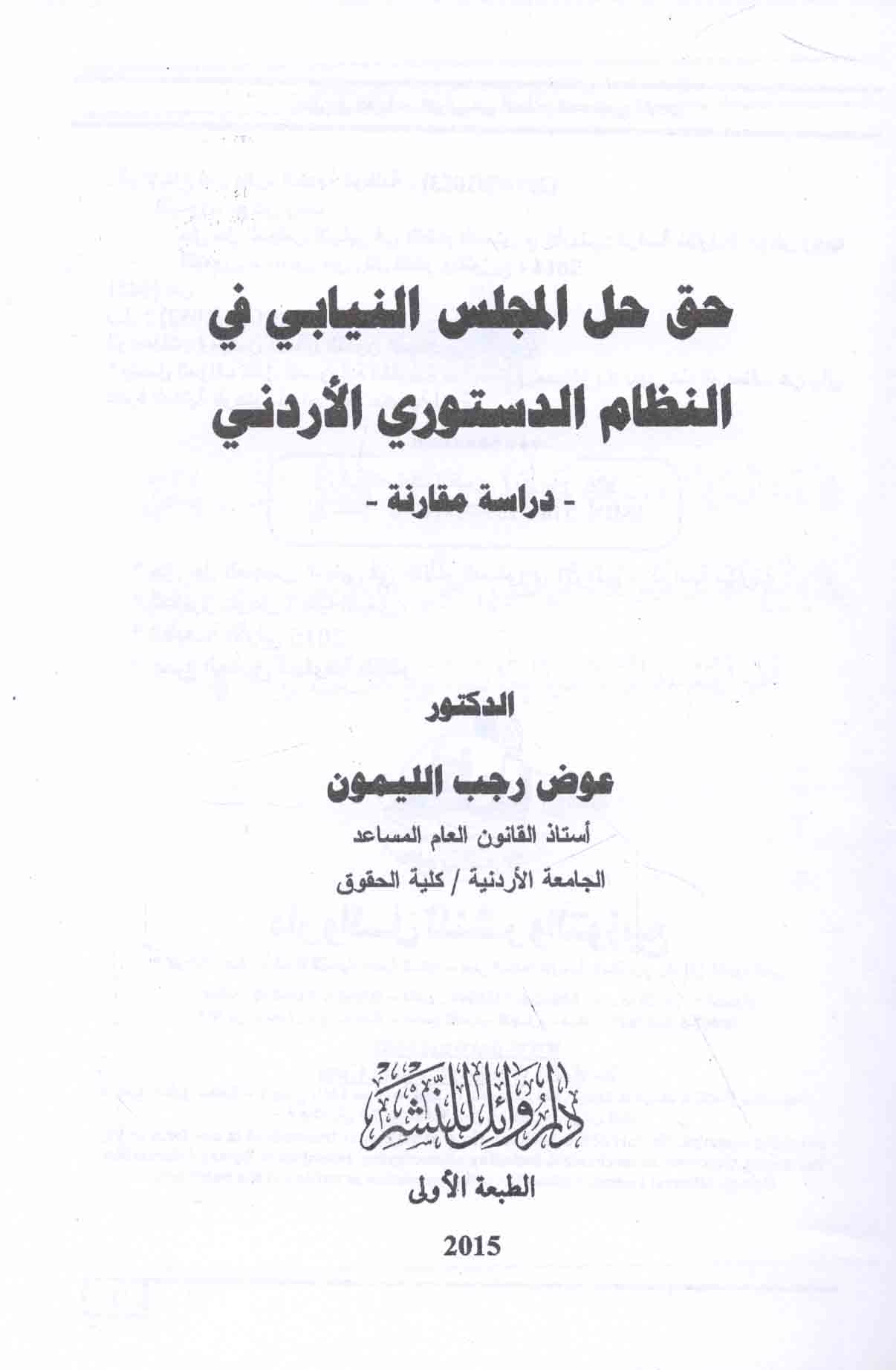 | Mabādi’ al-qānūn al-dustūrī wa-al-niẓām al-dustūrī al-Urdunnī wifqan lil-ta‘dīlāt al-dustūrīyah lil-‘ām 2011 |