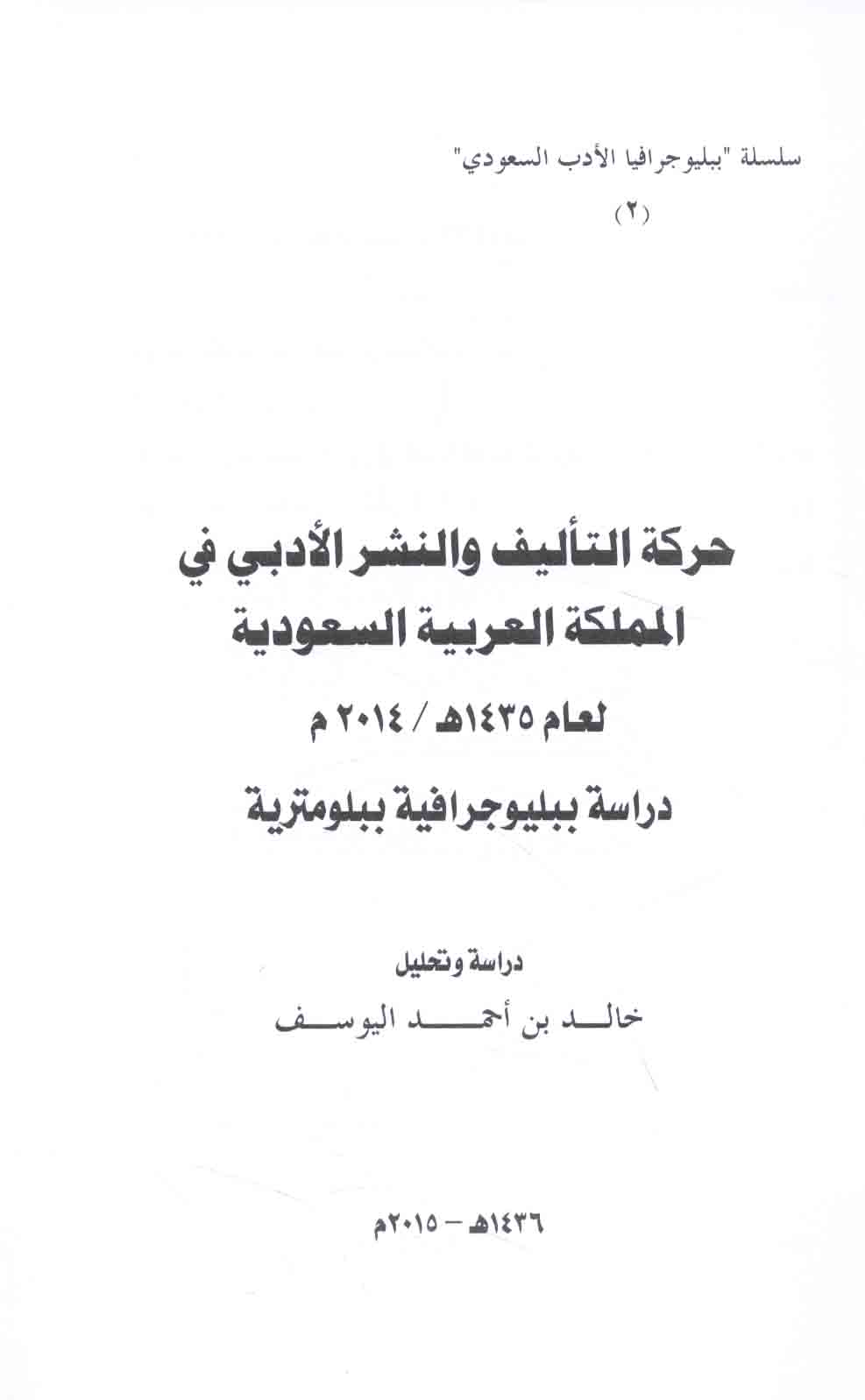 | Ḥarakat al-ta’līf wa-al-nashr al-adabī fī al-Mamlakah al-‘Arabīyah al-Sa‘ūdīyah li-‘ām 1436 H/2015 M |
