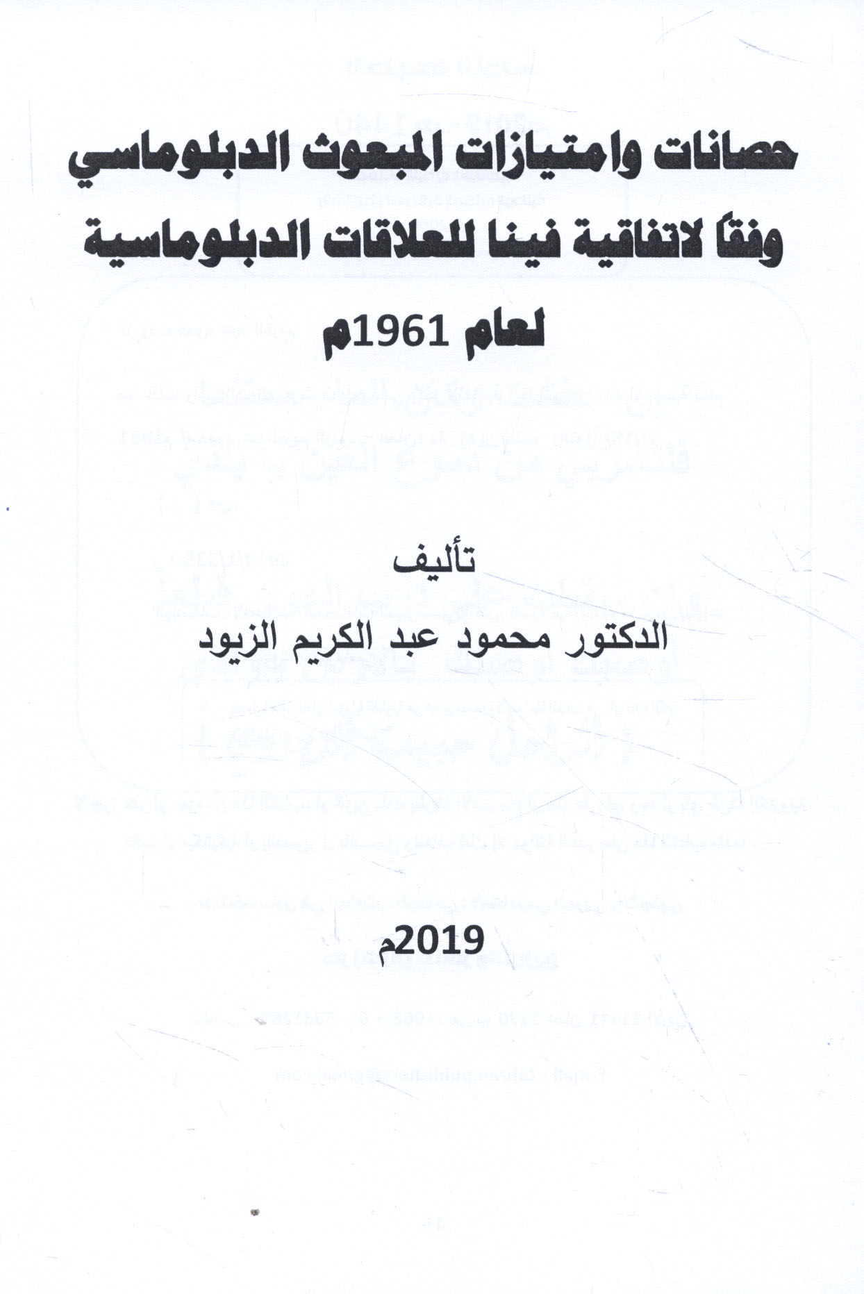 | Ḍamānāt al-ḥaṣānah al-diblūmāsīyah fī al-fiqh al-Islāmī wa-al-qānūn al-duwalī |