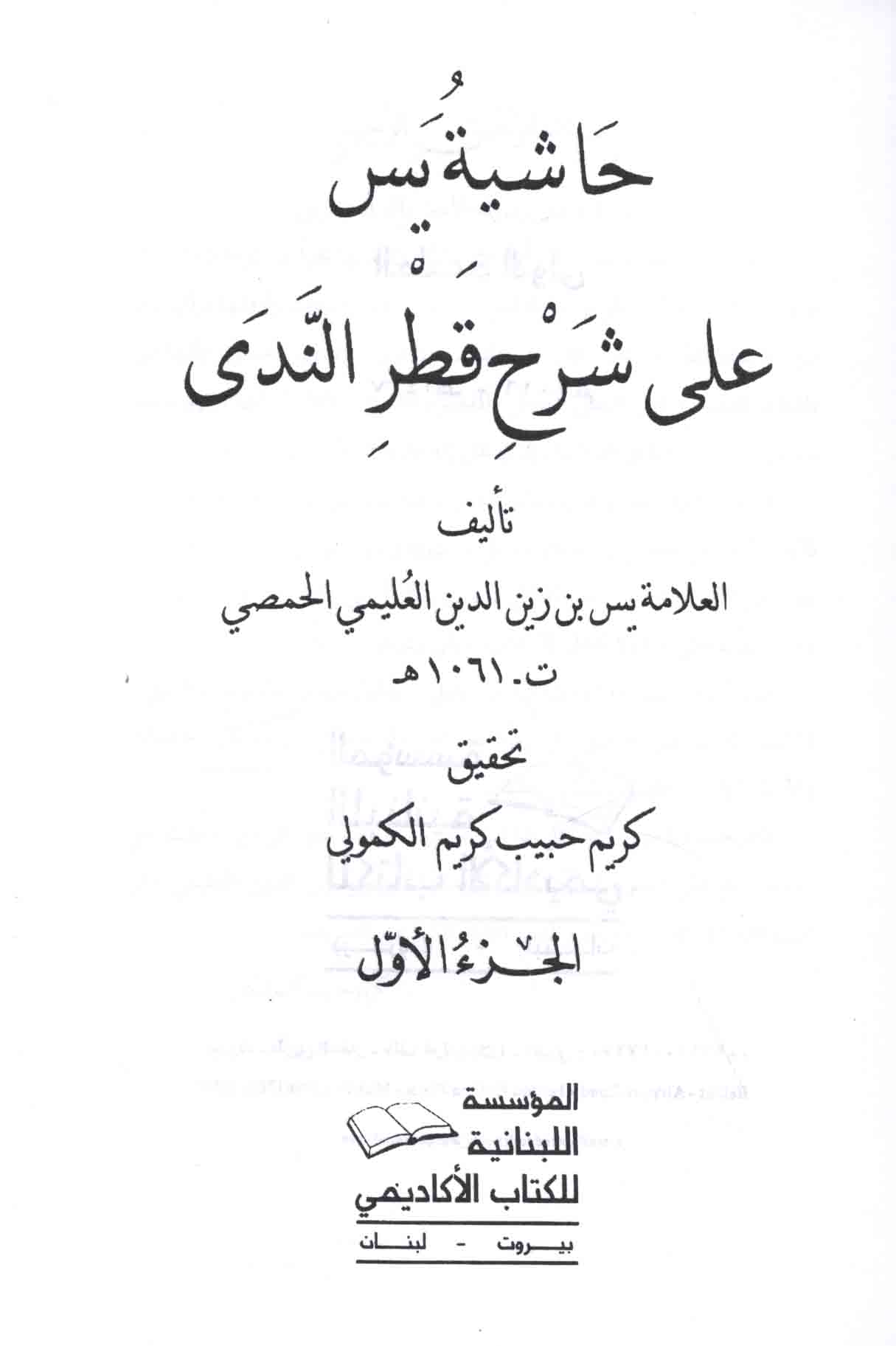 - Ibn Hisham, Abd Allah ibn Yusuf, 1309-1360. Qatr al-nada wa-ball al-sada