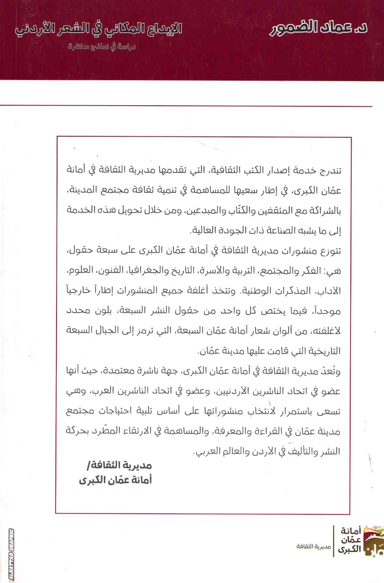 | Ṣūrat al-makān fī shi‘r ‘Izz al-Dīn al-Manāṣirah |