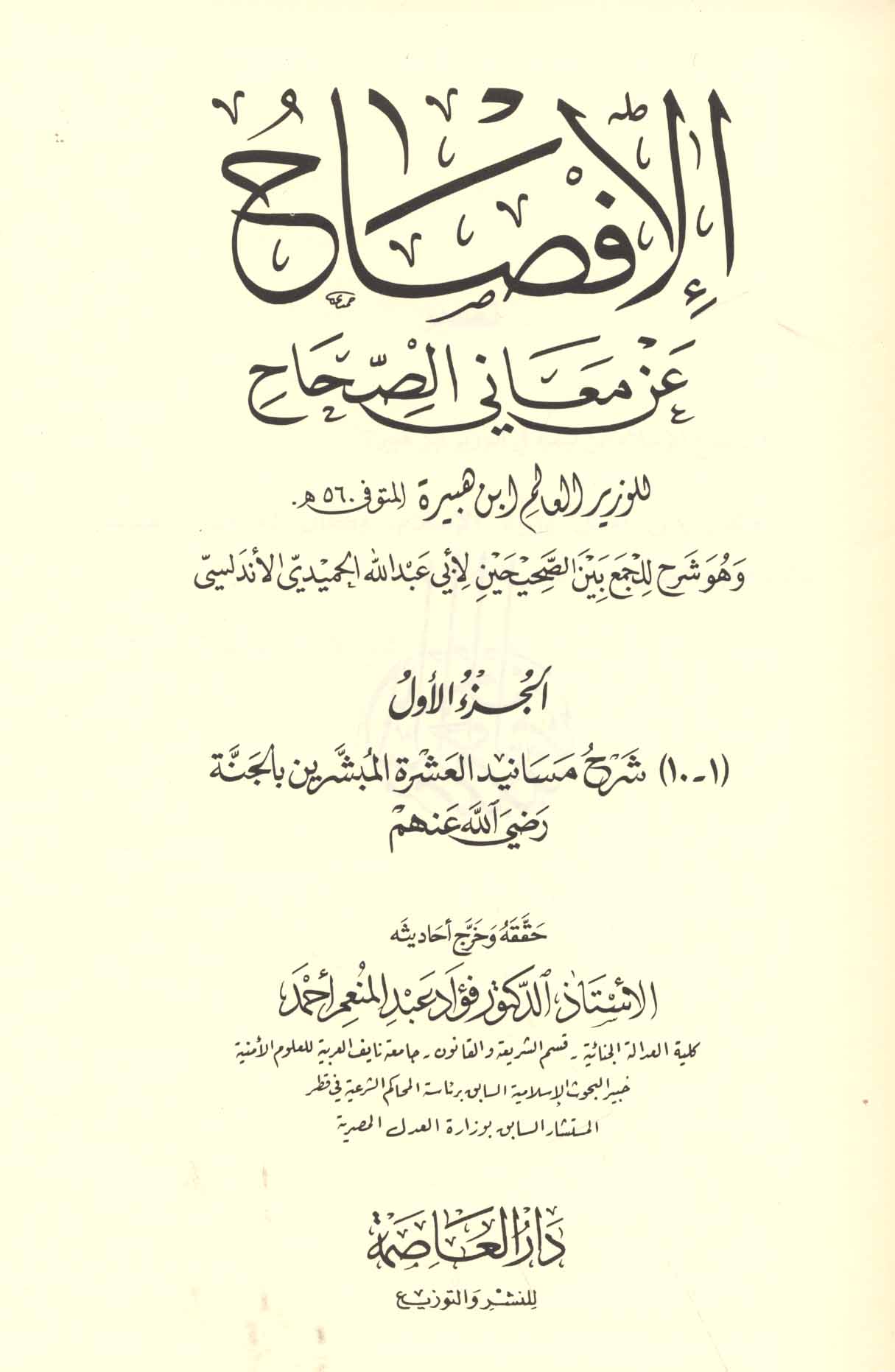 الإفـصـاح عـن مـعـانـي الـصـحـاح، و هـو شـرح لـلـجـمـع بـيـن الـصـحـيـحـيـن لأبـي عـبـد الله الـحـمـيـدي الأنـدلـسـي
