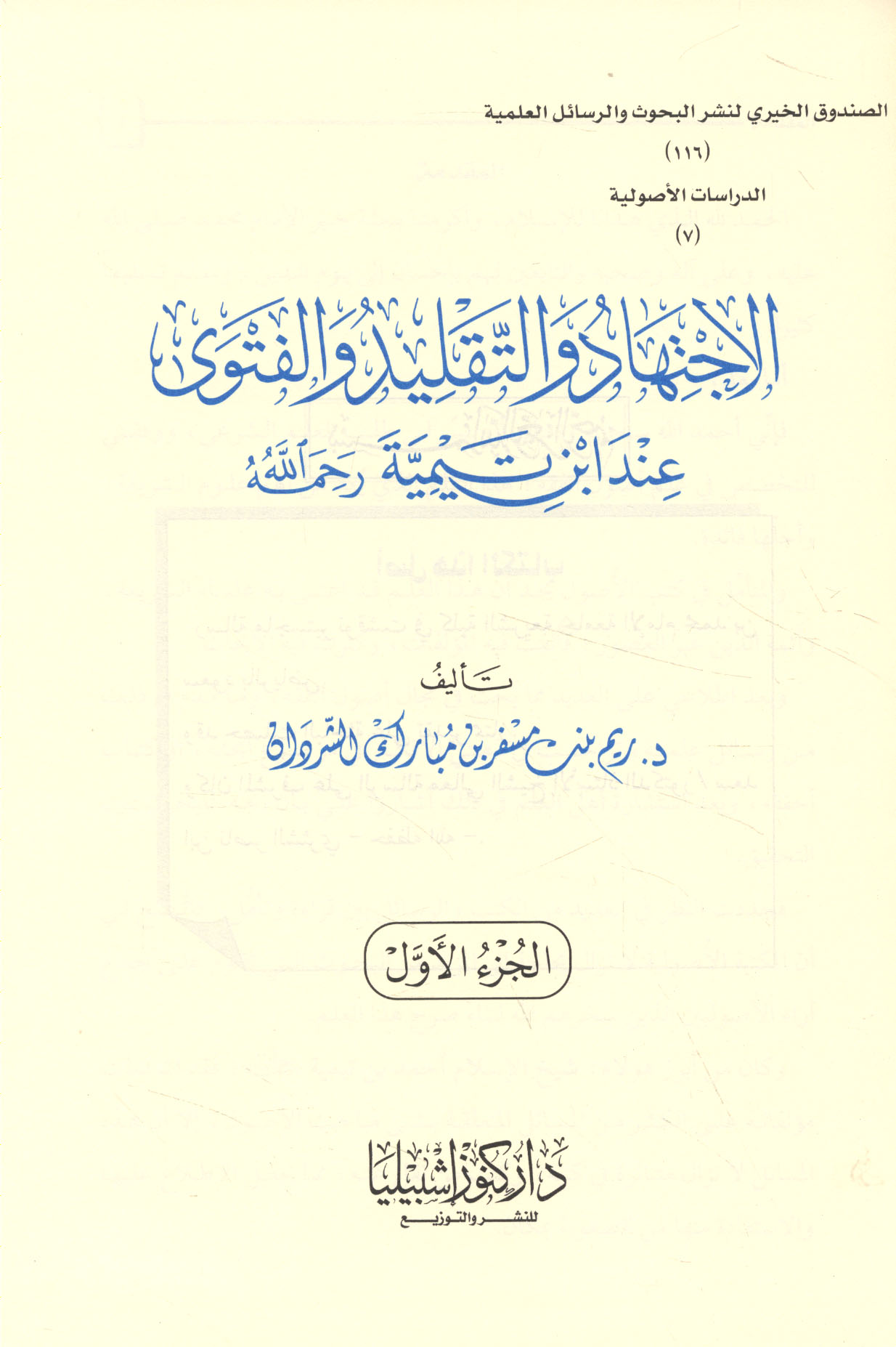 Series: al-Ṣundūq al-Khayrī li-Nashr al-Buḥūth wa-al-Rasā’il al-‘Ilmīyah. al-Dirāsāt al-Uṣūlīyah, 116