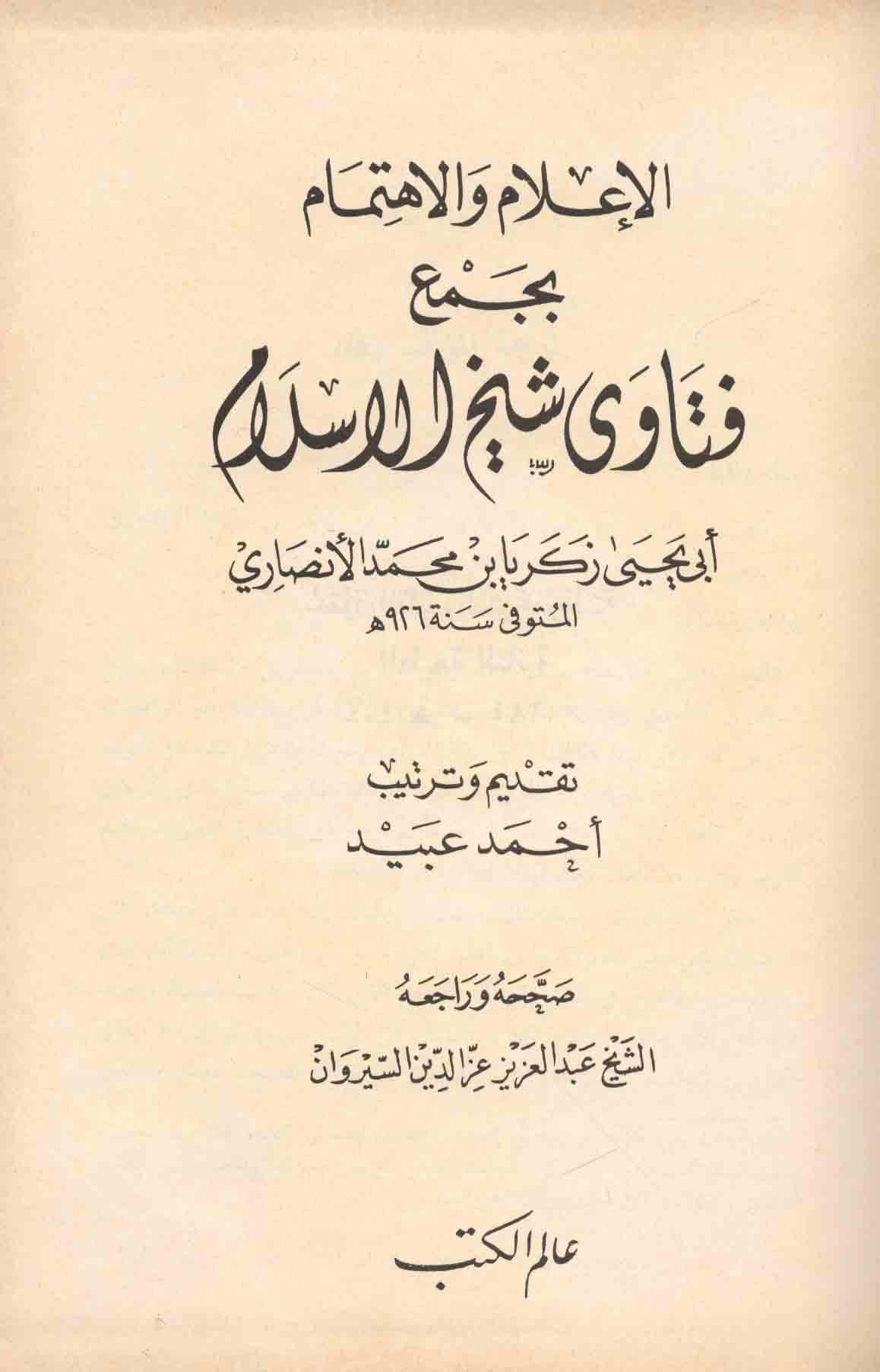 - Ansari, Zakariya ibn Muhammad, approximately 1423-approximately 1520. Ilam bi-ahadith al-ahkam