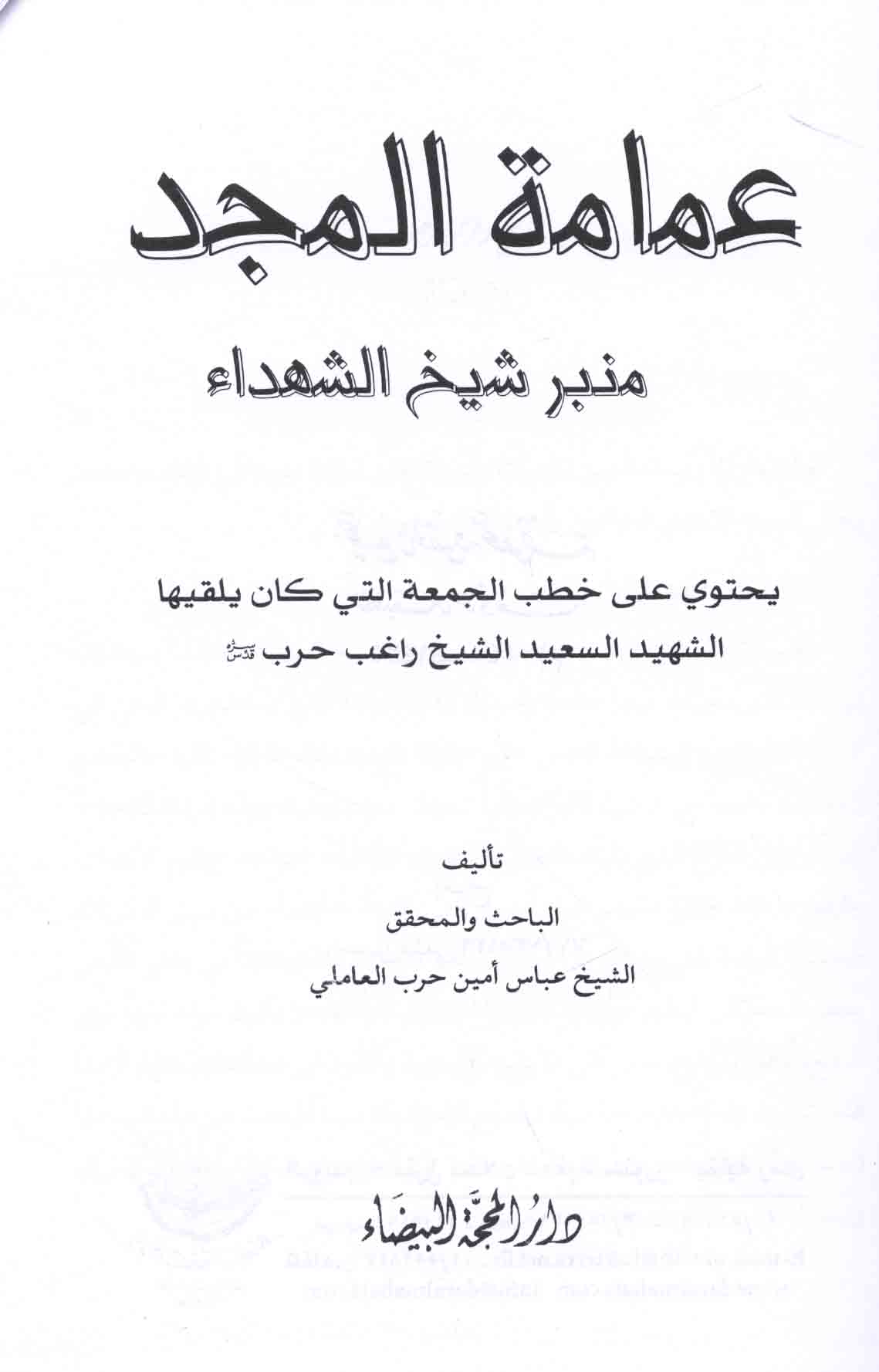 عـمـامـة الـمـجـد ، مـنـبـر شـيـخ الـشـهـداء، يـحـتـوي عـلـى خـطـب الـجـمـعـة الـتـي كـان يـلـقـيـهـا الـشـهـيـد الـسـعـيـد الـشـيـخ راغـب حـرب
