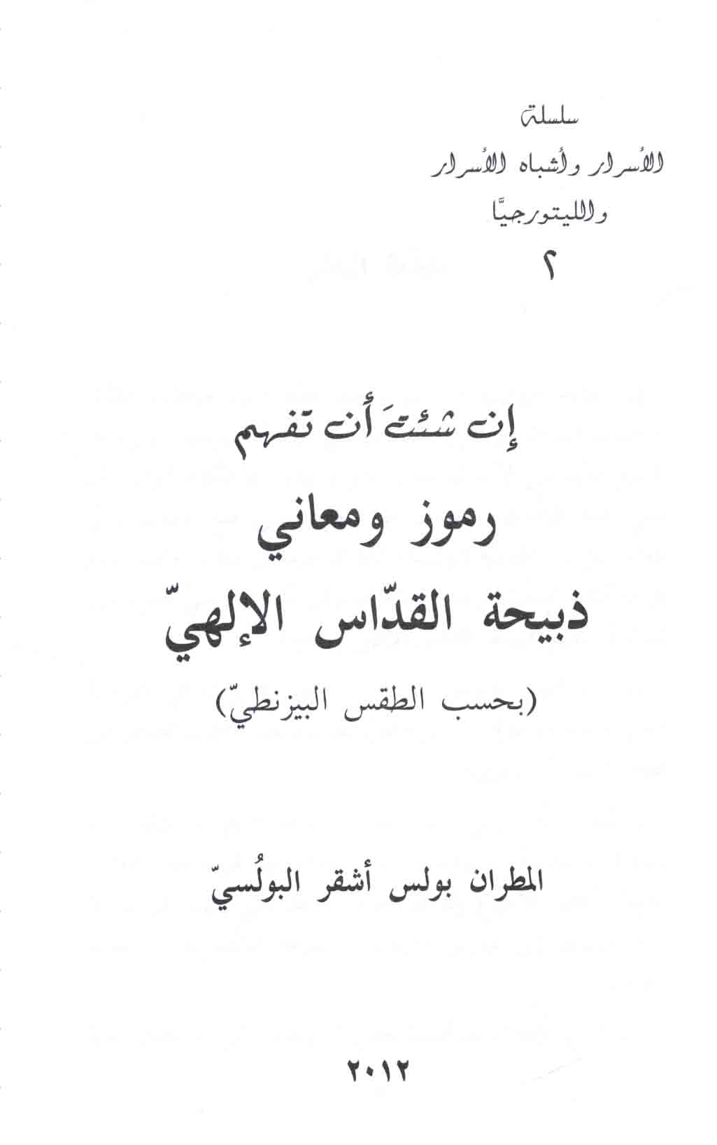 Series: Silsilat al-Asrār wa-Ashbāh al-Asrār wa-al-Lītūrjiyā, 2
