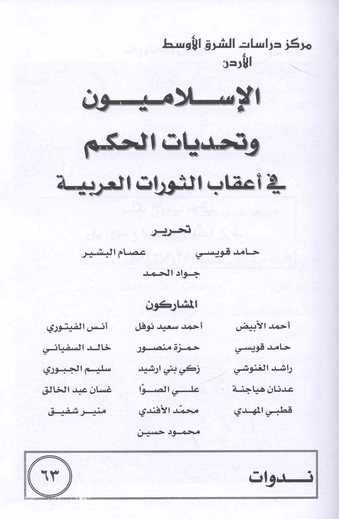 Published/Created: ‘Ammān : Markaz Dirāsāt al-Sharq al-Awsaṭ MESC, 2012.