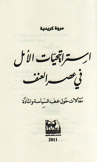 Istrātījīyāt al-amal fī ‘aṣr al-‘unf, maqālāt ḥawla ‘unf al-siyāsah wa-al-māddah