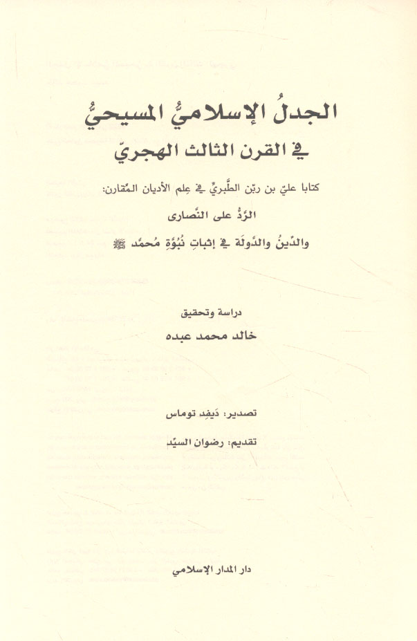 Subject: Tabari, Ali ibn Sahl Rabban, active 9th century. Radd ala al-Nasara.