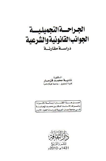 | ‘Amalīyāt al-tajmīl al-jirāḥīyah wa-mashrū‘iyatuhā al-jazā’īyah bayna al-sharī‘ah wa-al-qānūn |