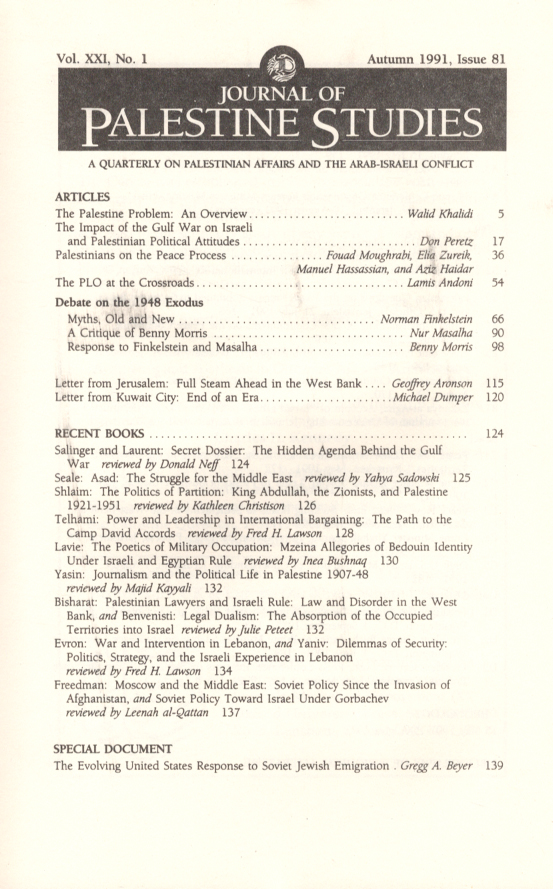 Journal of Palestine Studies, A Quarterly on Palestinian Affairs and the Arab-Israeli Conflict (Vol. XXI, No. 1)