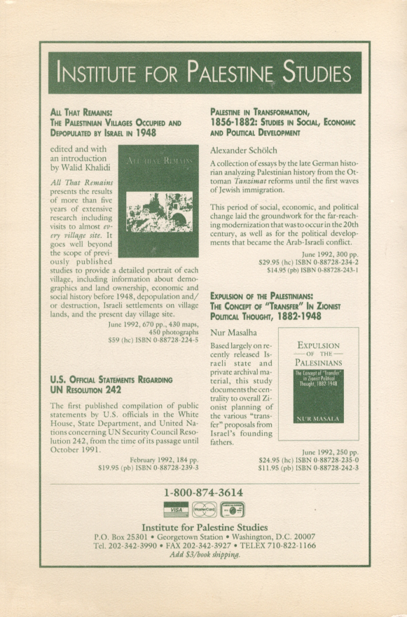 Published/Created: Beirut : The Institute for Palestine Studies and Kuwait University, 1992.