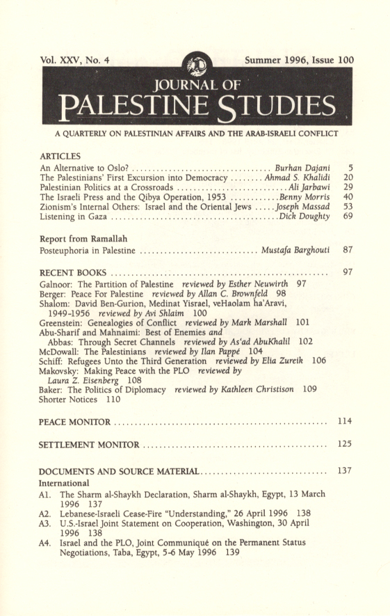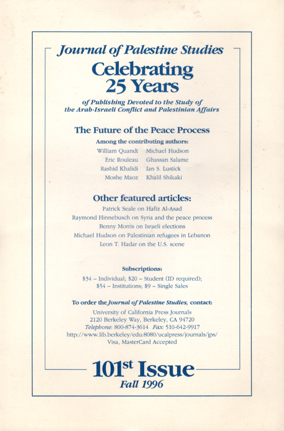 Journal of Palestine Studies, A Quarterly on Palestinian Affairs and the Arab-Israeli Conflict (Vol. XXV, No. 4)