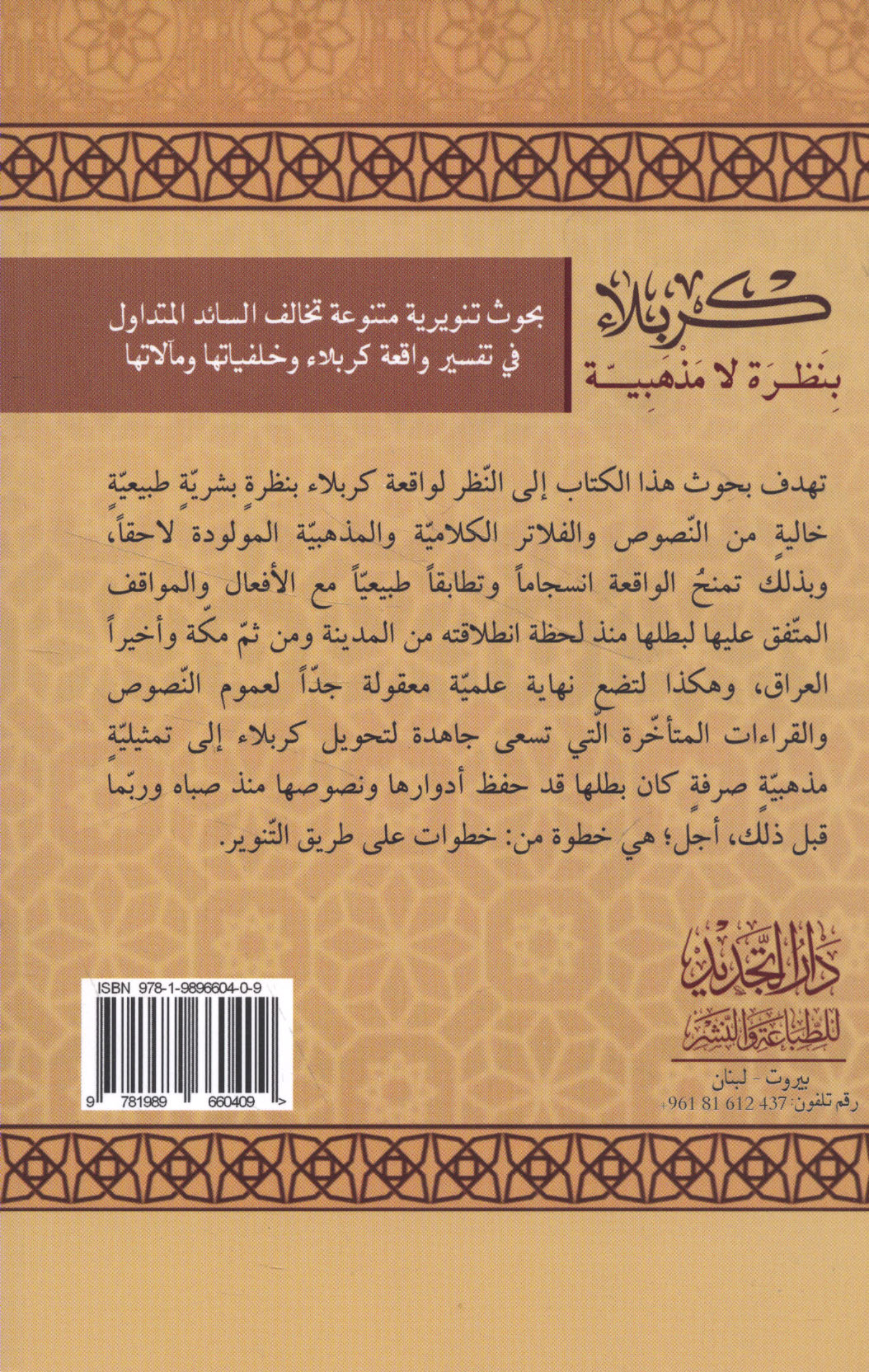 Published/Created: Bayrūt : Dār al-Tajdīd lil-Ṭibā‘ah wa-al-Nashr, 2019.