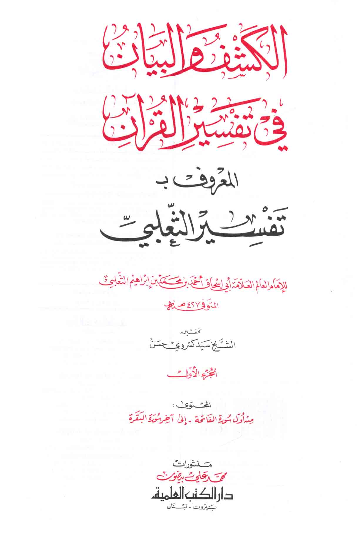 الـكـشـف و الـبـيـان فـي تـفـسـيـر الـقـرآن الـمـعـروف بـ تـفـسـيـر الـثـعـلـبـي