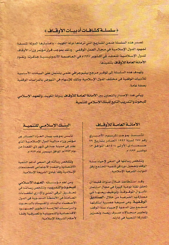 Published/Created: al-Kuwayt : al-Amānah al-‘Āmmah lil-Awqāf, 2002.